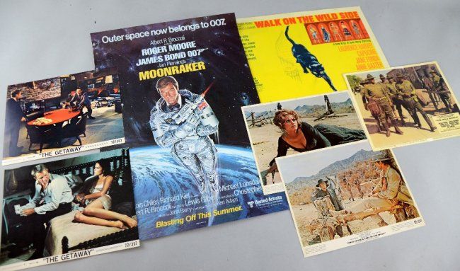 Front of House cards, Once Upon a Time In The West (2), The Wild Bunch (1), The Getaway (2) a lobby card for Walk On The Wild Side & a James Bond Moonraker US poster, The Wild Bunch Synopsis sheet & a Casino lobby card A/B (9)