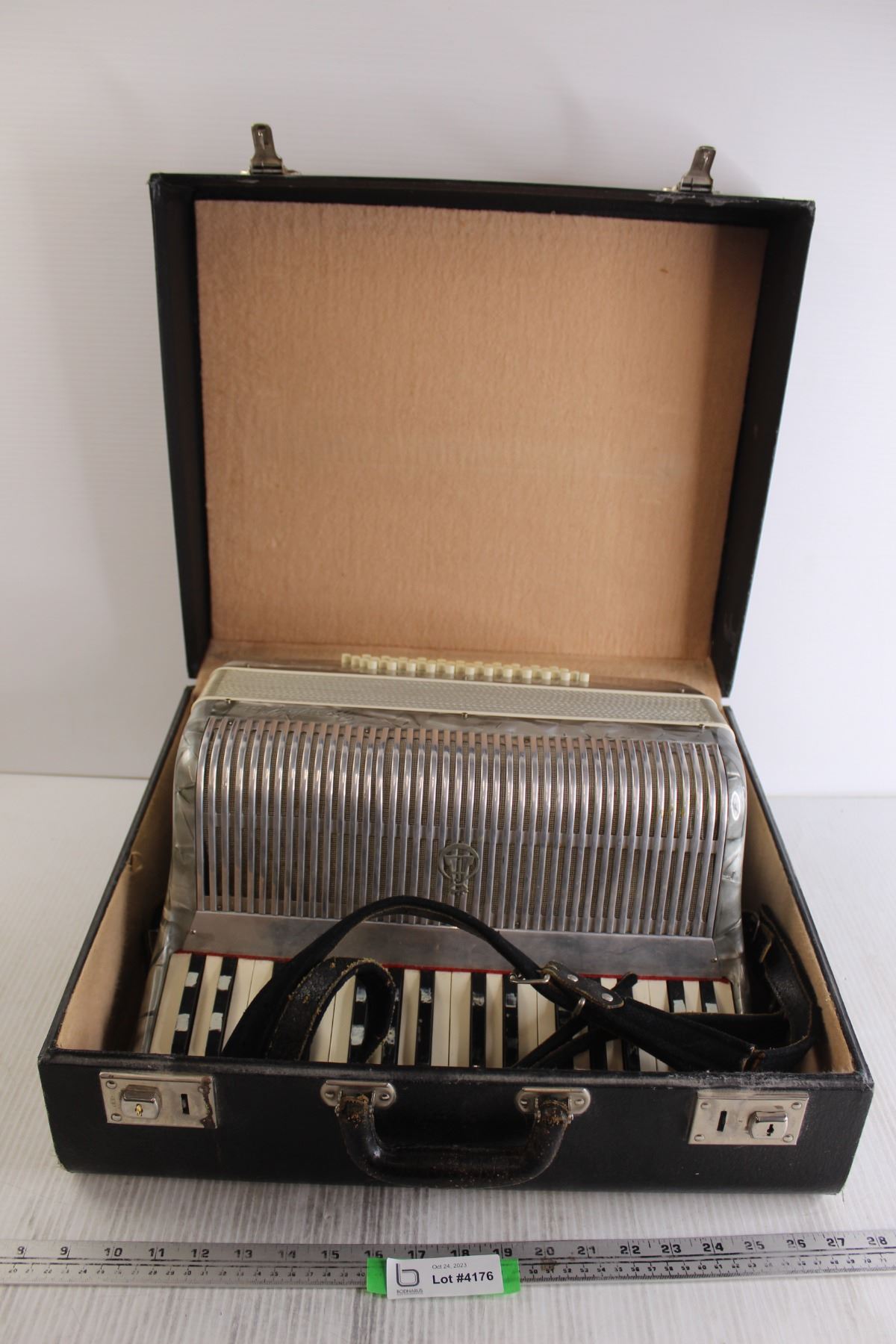 Frontalini Accordion with Carrying Case and Leather Straps - 1940s, Consignor Says Working