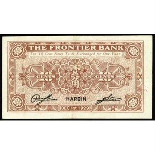 <style type="text/css"> body, td, th { font-family: Arial, Helvetica, sans-serif; font-size: 12px; color: #482424; margin: 0px; padding: 0px; } #header { background-image: url(http://www.bowersandmerena.com/ebay/images/template_v3_01.gif); clear: both; background-color: #590303; border-top-width: 2px; border-top-style: solid; border-top-color: #B38C4F; } #header #header_wrapper { height: 75px; clear: both; width: 800px; margin-right: auto; margin-left: auto; background-image: url(http://www.bowersandmerena.com/ebay/images/template_v3_03.gif); background-repeat: no-repeat; background-position: right; color: #F3EDCC; } #header #header_wrapper #header_logo { float: left; height: 75px; width: 444px; background-image: url(http://www.bowersandmerena.com/ebay/images/template_v3_02.gif); background-repeat: no-repeat; font-size: 10px; text-transform: capitalize; color: #B38C4F; } #header #header_wrapper #header_right { float: left; height: 75px; width: 356px; text-align: right; } #header #header_wrapper #header_right #headerLoginBtn { margin-bottom: 30px; } #header #header_wrapper #header_right input#txtSearch { color: #B49056; border: 1px solid #B49056; width: 175px; padding-top: 3px; padding-right: 3px; padding-bottom: 4px; padding-left: 3px; } #nav { height: 37px; background-image: url(http://www.bowersandmerena.com/ebay/images/template_v3_05.gif); clear: both; } #nav #nav_wrapper { height: 35px; width: 800px; margin-right: auto; margin-left: auto; border-left-width: 1px; border-left-style: solid; border-left-color: #B38C4F; } #nav #nav_wrapper a { padding-right: 15px; padding-left: 15px; border-right-width: 1px; border-right-style: solid; border-right-color: #B38C4F; height: 25px; padding-top: 10px; display: block; float: left; text-decoration: none; font-weight: bold; color: #5D0303; } #nav #nav_wrapper a:hover { color: #B38C4F; } #nav #nav_wrapper #search { float: right; padding-top: 7px; } #nav #nav_wrapper #search #txtSearch { font-family: Arial, Helvetica, sans-serif; font-size: 10px; text-transform: uppercase; color: #D2AE75; border: 1px solid #B38C4F; padding: 3px; } #content_bgd { background-image: url(http://www.bowersandmerena.com/ebay/images/template_v3_09.gif); background-repeat: repeat-y; background-position: center; padding-top: 15px; padding-bottom: 15px; background-color: #FBFBDB; } #content_wrapper { clear: both; height: auto; width: 800px; margin-right: auto; margin-left: auto; } .LotDetailWhite { line-height:normal; font-size:13px; font-family: arial,helvetica,sans-serif; color: White; font-weight: bold; } .LotDetailInformation { line-height:normal; font-size: 13px; font-family: arial,helvetica,sans-serif; } .LotDetailMessage { line-height:normal; font-size: 13px; font-family: arial,helvetica,sans-serif; color: red; } } tr.HeaderAuctionTitle td { color: #000000; font-weight: bold; padding: 2px; background-image: url(http://www.bowersandmerena.com/ebay/images/template_v3_05.gif); background-repeat: repeat-x; border-bottom-width: 1px; border-bottom-style: solid; border-bottom-color: #B38C4F; } table.AuctionSummary a, table.AuctionSummary a:link, table.AuctionSummary a:visited { color: #0000FF; text-decoration: none; } } td.tableHeaderLeft { border-left-width: 1px; border-left-style: solid; border-left-color: #B38C4F; } td.tableHeaderRight { border-right-width: 1px; border-right-style: solid; border-right-color: #B38C4F; } td.tableCellMiddle { border-left-width: 1px; border-left-style: solid; border-left-color: #B38C4F; border-right-width: 1px; border-right-style: solid; border-right-color: #B38C4F; padding: 5px; } tr.footer td { border-top-width: 1px; border-top-style: solid; border-top-color: #B38C4F; } </style> </head> <body> <div id="header"> <div id="header_wrapper"> <div id="header_logo"> </div> <div id="header_right"> </div> </div> </div> <div id="nav"> <div id="nav_wrapper"> <a href="http://www.bowersandmerena.com">Our eBayLive Auctions</a> <a href="#PaymentInfo">Payment Information</a> <a href="#ShippingInfo">Shipping Information</a> <a href="#About">About Bowers and Merena</a> </div> </div> <div id="content_bgd"> <div id="content_wrapper"> <table width="100%" border="0" cellpadding="5" cellspacing="0" class="AuctionSummary"> <tbody> <tr class="HeaderAuctionTitle" style="height: 25px;"> <td align="left" class="tableHeaderLeft" > </td> <td align="center" class="tableHeaderRight"> <span style="font-size: large;">Lot #704. Provincial Banks. Frontier Bank, 1929 Issues.</span> </td> </tr> <tr> <td colspan="3" class="tableCellMiddle"> Harbin, 1929 Issue. 10 cents, P-S2576a., Issued banknote, XF to XF+ but appears Unc., scarce note in amazing condition