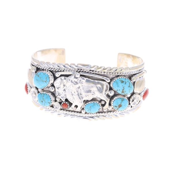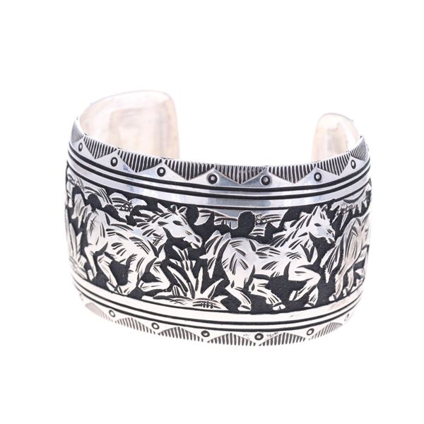 Featured in this lot is a sterling silver bracelet from Navajo artist, Billy Slim. The bracelet features a wonderfully and professionally crafted ster