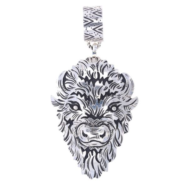 Featured in this lot is a sterling silver buffalo head pendant from Navajo artist, Richard Singer. The pendant features a wonderfully and professional