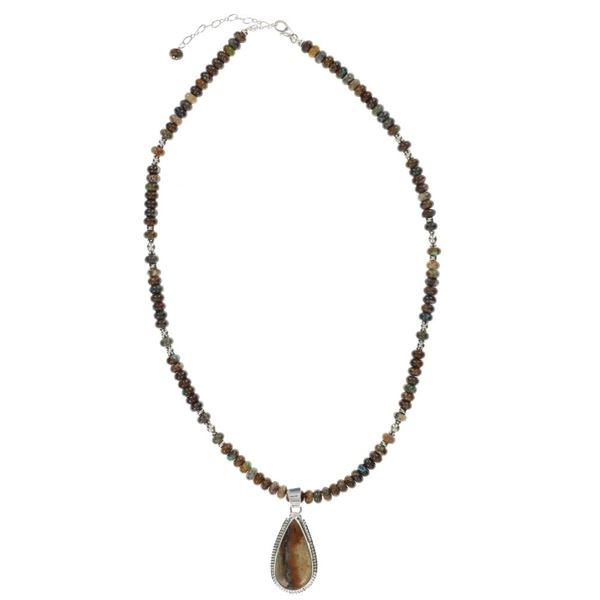 Featured in this lot is a bear claw turquoise necklace from Navajo artist, M. Thomas Jr. The necklace features a wonderfully and professionally crafte