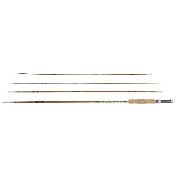 Featured in this lot is a custom handmade bamboo fly rod, circa 1960s. The fly rod features a wonderfully and professionally crafted bamboo and cork c