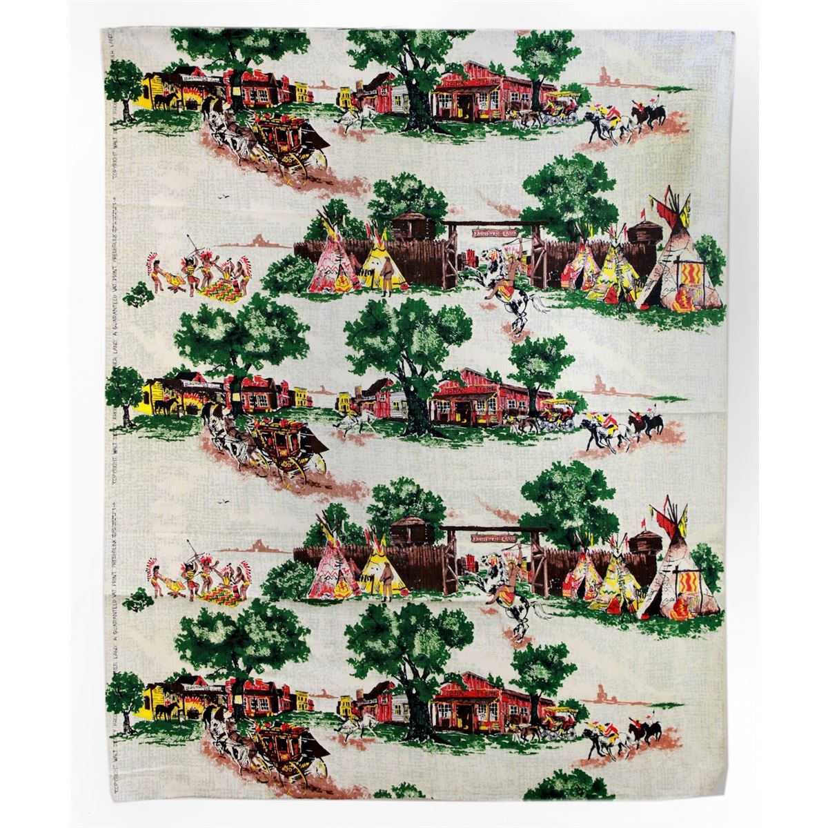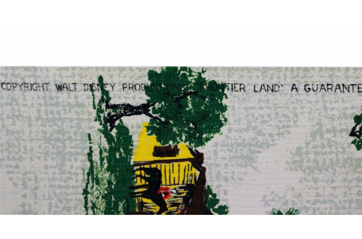 (Disneyland, 1955) Unusual and rare souvenir fabric sold at the Davey Crockett Mercantile in the early days of the park. Measuring 5.5 x 13 in. In very good condition with some staining on reverse. Measuring 36 x 42 in. and in very good condition.