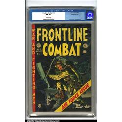 Frontline Combat #12 Gaines File pedigree 8/11 (EC, 1953). Jack Davis' dramatic use of light and shadow highlights the cover of this special "Air Force Issue," featuring interior art by Jack Davis, George Evans and Wally Wood. An unread, uncirculated copy from the personal files of Bill Gaines. CGC NM- 9.2 Off-white pages. Overstreet 2001 NM 9.4 value = $125. Important notice: We expect to be auctioning lots at the rate of 200-250 per hour. Sometimes eBay Premier live bid software cannot keep up with that pace, so we strongly recommend that you place a realistic proxy bid now as insurance to avoid disappointment. Also please note that all Heritage/CAA lots purchased through eBay Premier carry a 20% Buyer's Premium.