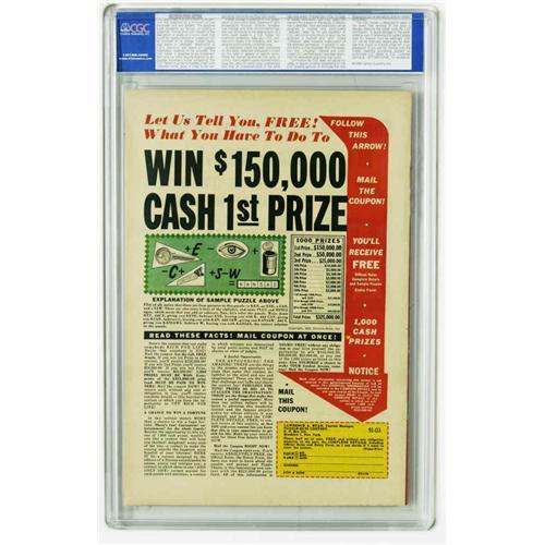 50. Since we cannot examine encapsulated notes or comics, they are sold "as is" without our grading opinion, and may not be returned for any reason. Auctioneer shall not be liable for any patent or latent defect or controversy pertaining to or arising from any encapsulated collectible. In any such instance, purchaser's remedy, if any, shall be solely against the service certifying the collectible.