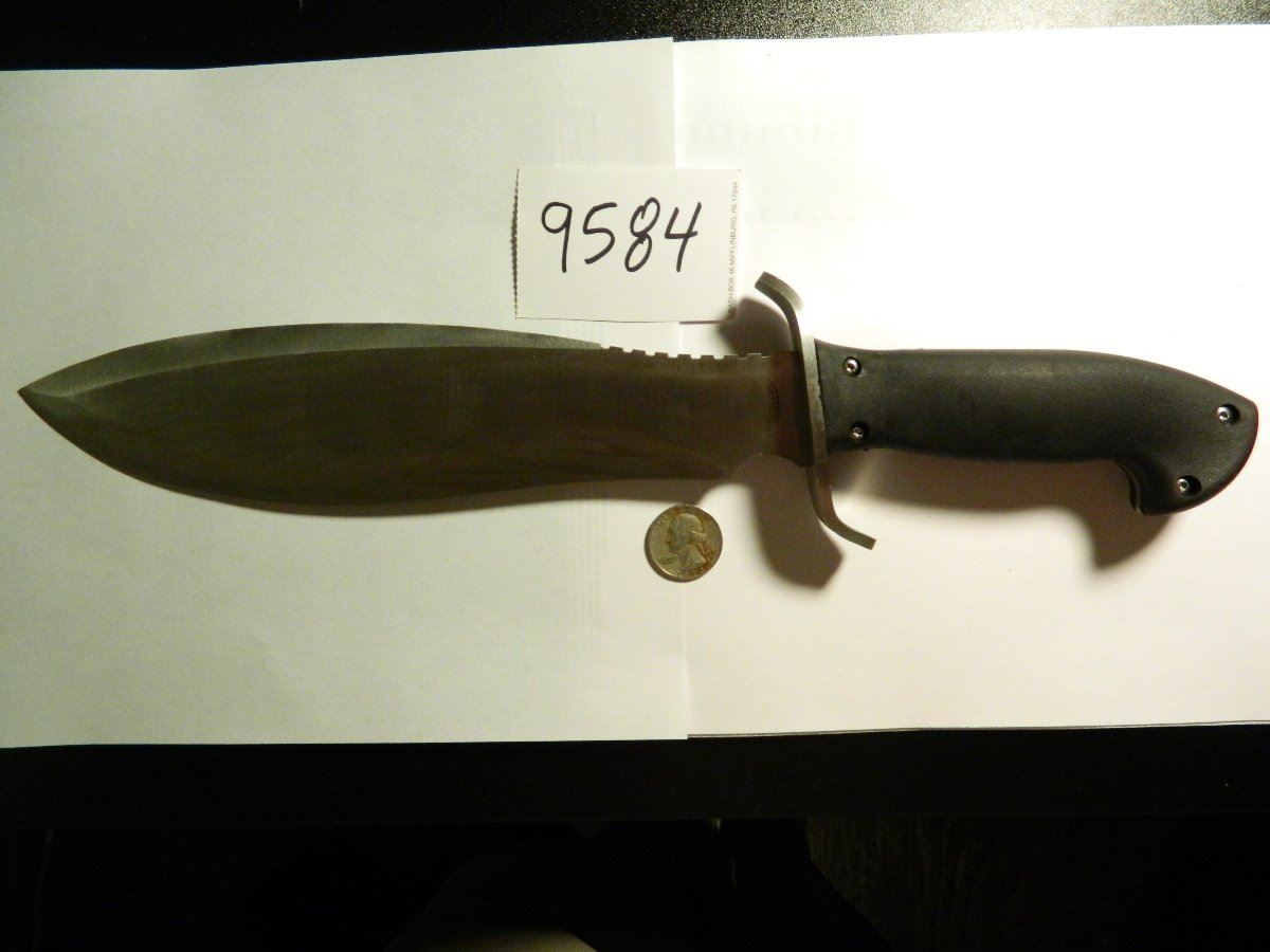 Arapaho Bowie - 15" overall. 9 3/4" satin finish stainless blade. Full tang. Textured black rubber handles. Stainless guard. Black nylon belt sheath.
