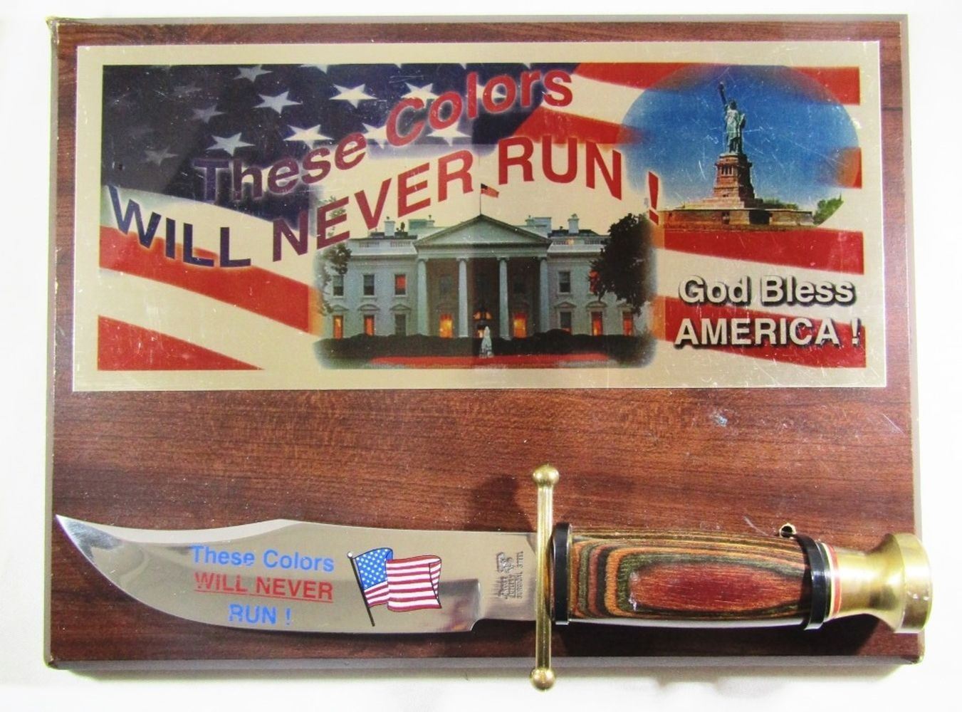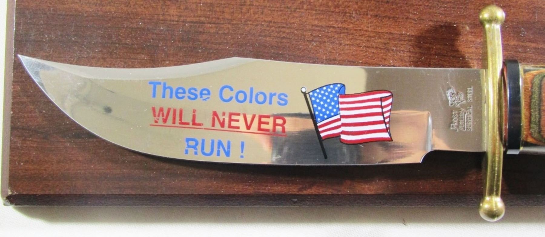 "These Colors Will Never Run!" Stamped on Blade and on Display Plaque!