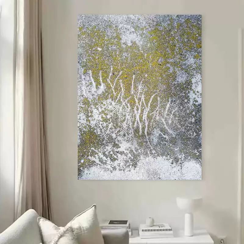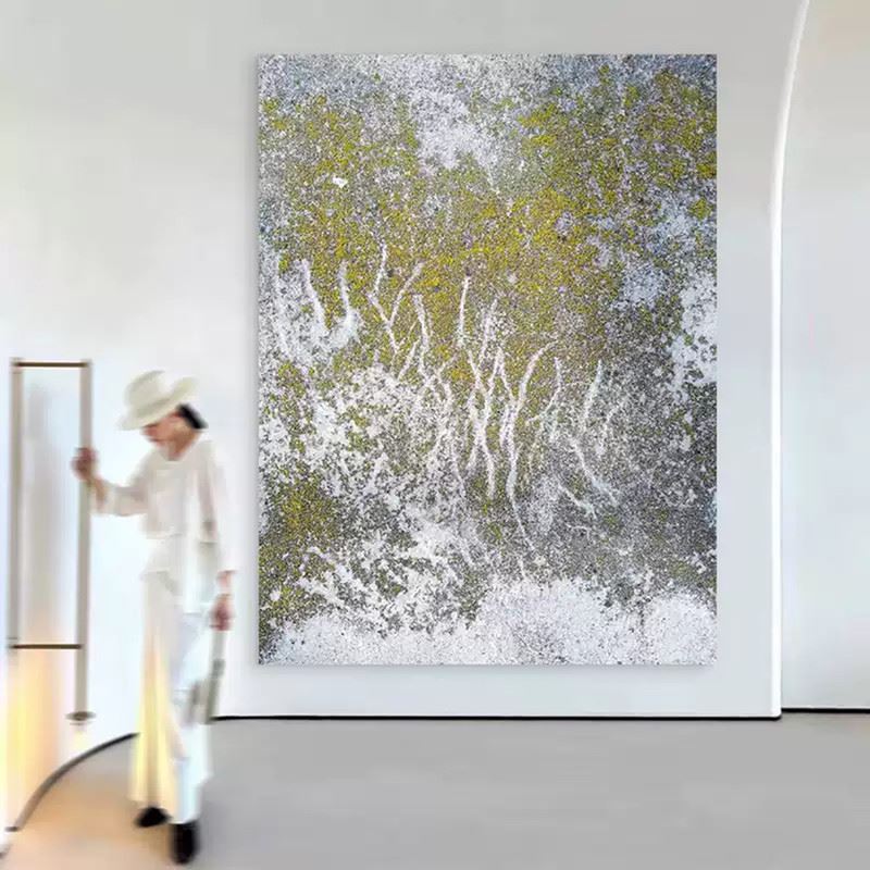 On the cold gray surface, pale lines spread like frost creeping through tiny cracks, leaving quiet traces of time. Dimensions: 24 x 31 inches.
