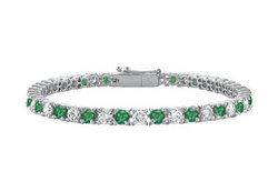 This never ending chain of alternating round frosted emeralds and white CZs symbolizes your timeless love. Crafted in 10K white gold & held in a prong setting this tennis bracelet has a total gem weight (TGW) of 5.00 carats. A great way to honor your union.
