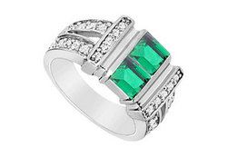 Two square frosted emeralds are channel-set in the center & is enhanced by round white CZs on both sides. This tough ring is made in 10K white gold & has a total gem weight (TGW) of 1.25 carat.