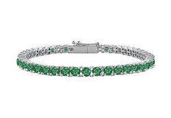This gorgeous tennis bracelet surrounded on your wrist with round prong-set frosted green emeralds. The entire bracelet is made of .925 sterling silver with high shine rhodium plated. It has a total gem weight (TGW) of 10.00 carats & is secured with a safety clasp.