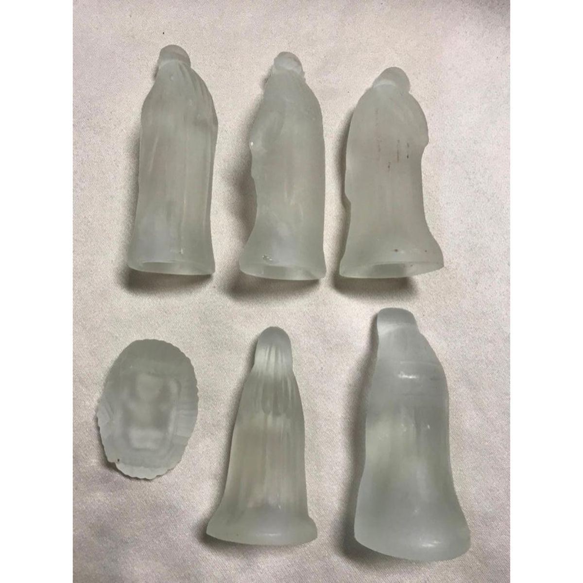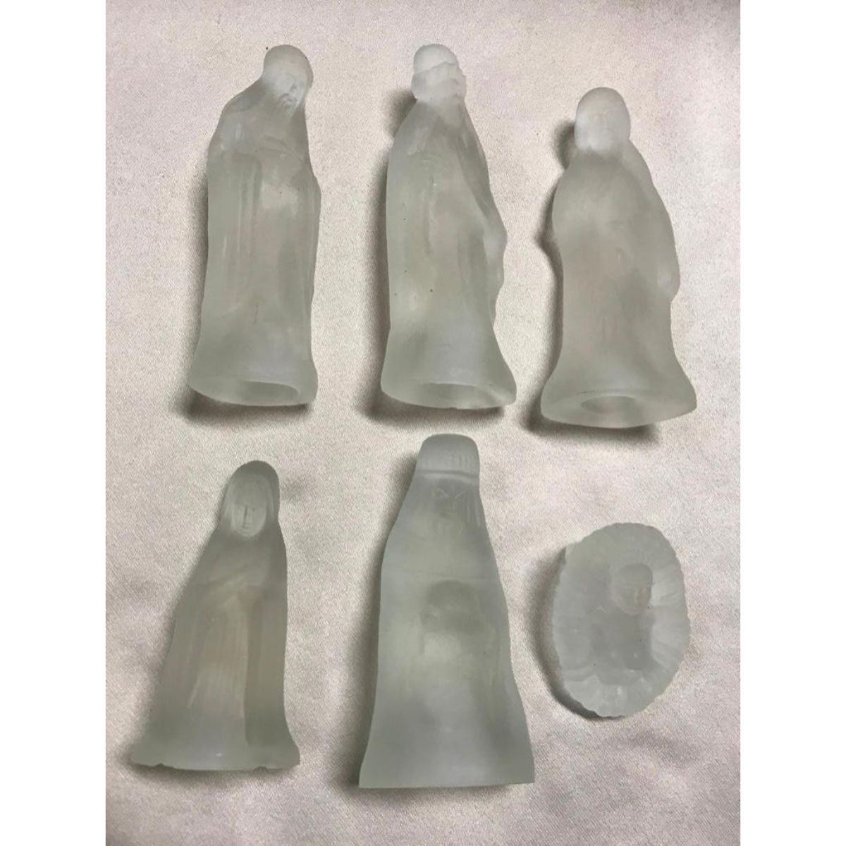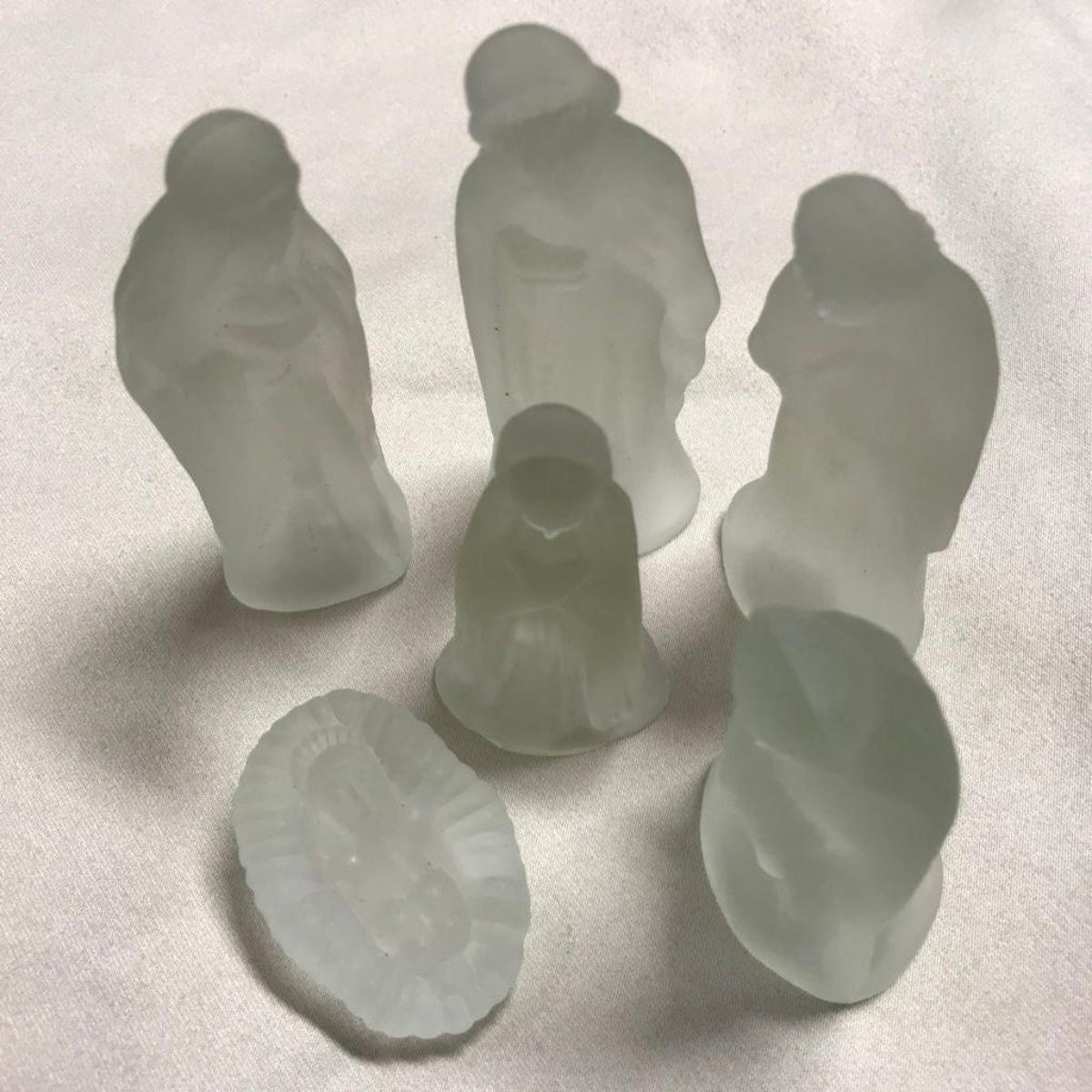 Frosted glass nativity figures set, Mary, Joseph, baby Jesus & the three wise men. 3" - 4" H. * slivers of loss to one figure at the bottom edge.