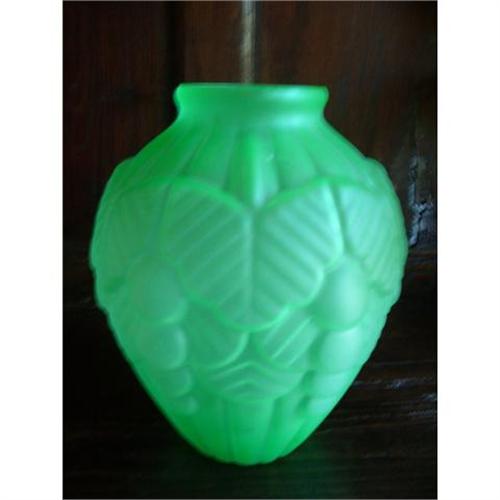 <tr><td>Title:Frosted Green Art Deco Glass Vase</td></tr>