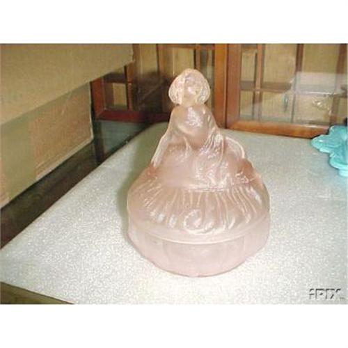 <tr><td>Title:Frosted Pink Curtsy Powder Jar</td></tr>