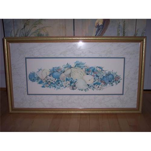 Watercolor print entitled Fruit Basket II is signed by artist Leila Platt '92. This print is one of a set of two. Framed size is 17" x 32". Excellent condition.