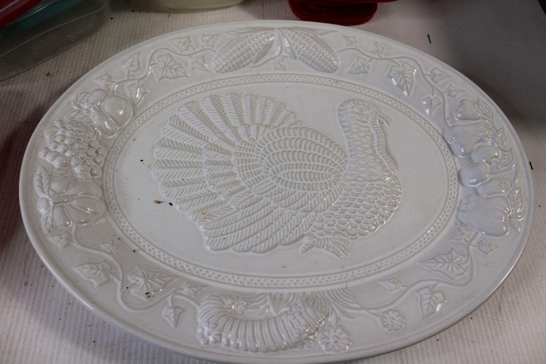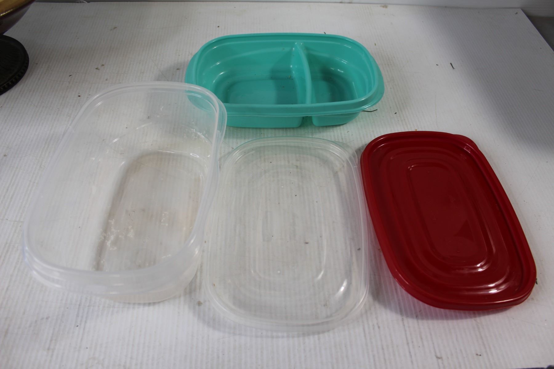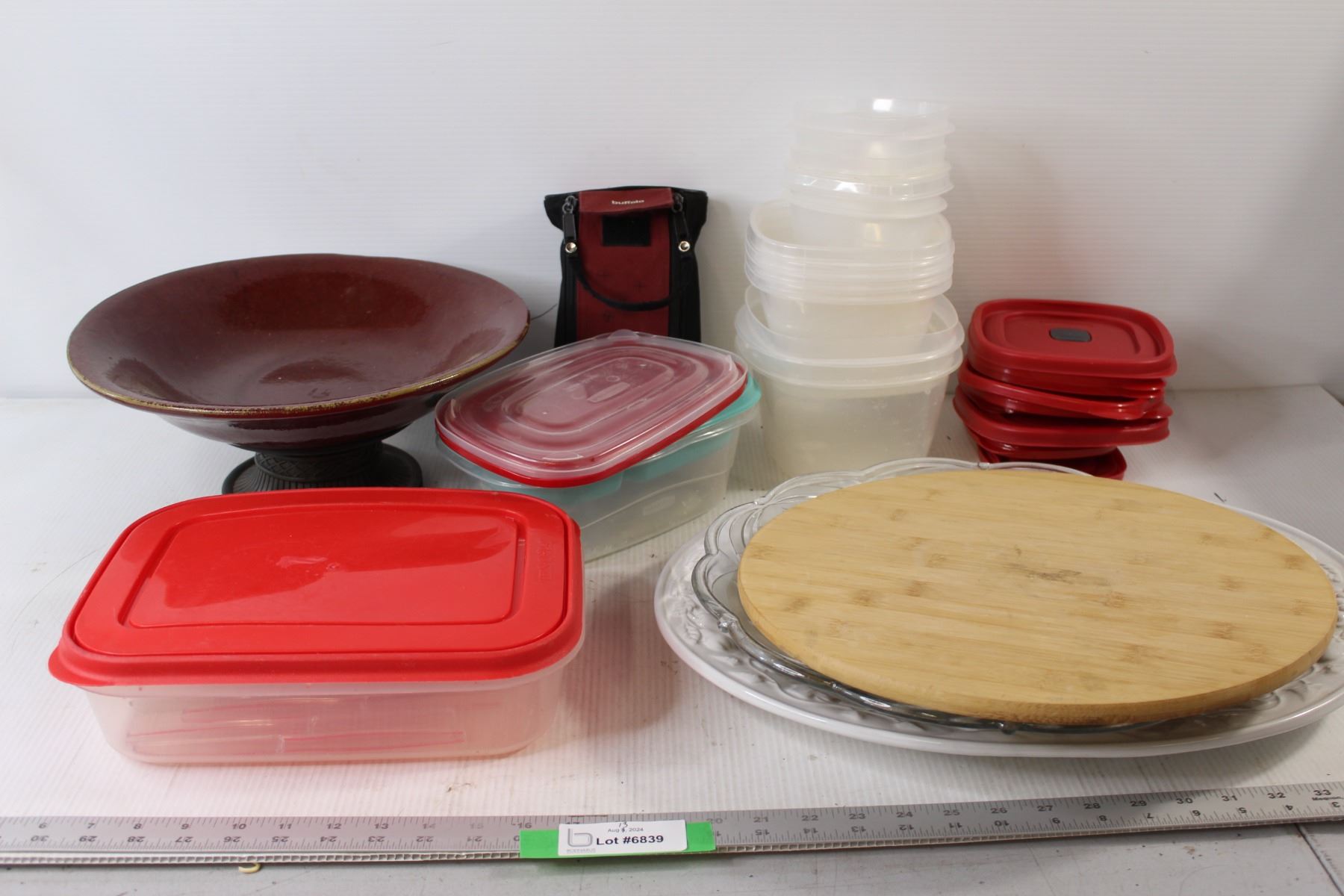 Fruit Bowl, Lazy Susan Tray, Glass Tray, Cresco White Turkey Tray, Assorted Tupperware Containers, B