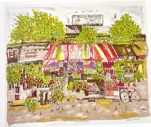 A hand-signed handpulled lithograph by Susan P. Meisel . Limited edition # 91 / 275. It is 22x27.5" on paper.
