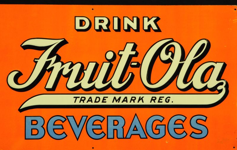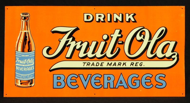 Fruit-Ola Beverage Tin Sign Near Mint NOS Measures 12" x 24"