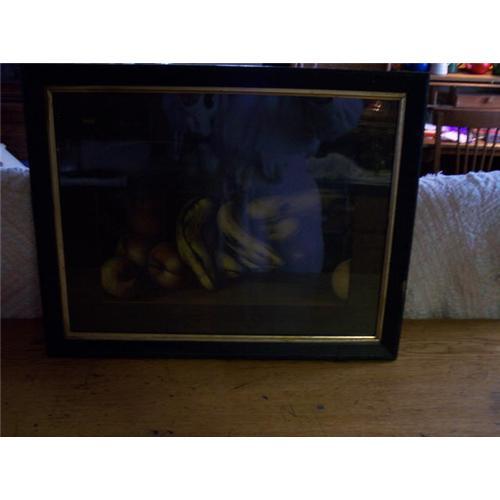 This is a darker print,just the way it was originally.Has a large mat around it so I can not see any info on this one.Looks like you could reach right in and pick it up.Nice old wooden frame with minor wear.Measures 19 1/2 x15 1/2 includes frame.