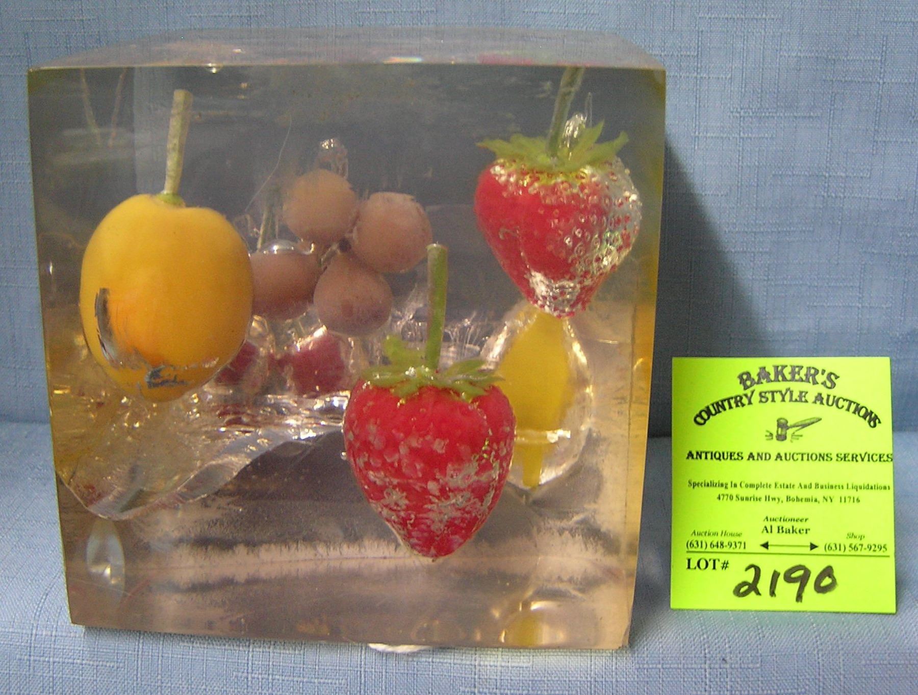 Fruit decorated Lucite paperweight est. value $50.00-$75.00