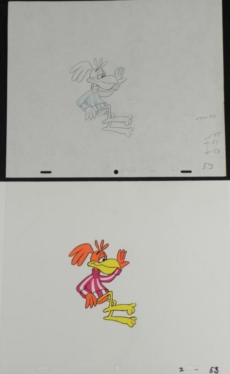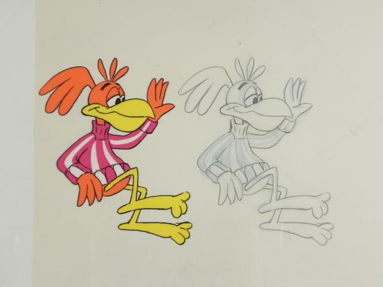 Working in the world of food on a daily basis can be so frustrating!!! * Original * Cel and Drawing * * AnimationOriginal "rough" drawing * in black and * non-photo blue pencil with the notations in black and non-photo * blueOverall size is a 12-field * drawing that is 10 * 1/2" x 12 1/2"Size of cel: 10 1/2" x * 12 * 1/2"Excellent condition * This is an * original * hand-painted cel used in the production of * the "Coco Puffs" TV commercial. Each cel represents a * slight * change in position of the characters. When individually photographed and * projected in rapid succession, the images appear to move.To * create production cels, the original animator's drawing is transferred * onto an acetate cel (by hand-inking and/or photo copying). The cel is * then hand-painted on the reverse * side. * * * The drawing and cel are ready to be matted and * framed. The animator's notations are located at the bottom of both. * *