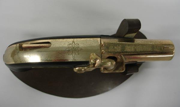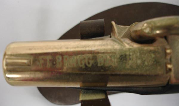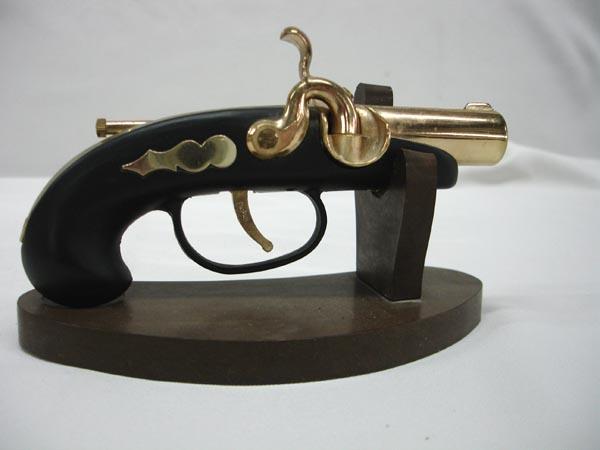 Vintage Cigarette Lighter Derringer Pistol Shape. Inscribed ''FT BRAGG DET 1970'' on the top. Does Work. Measures 6'' long.