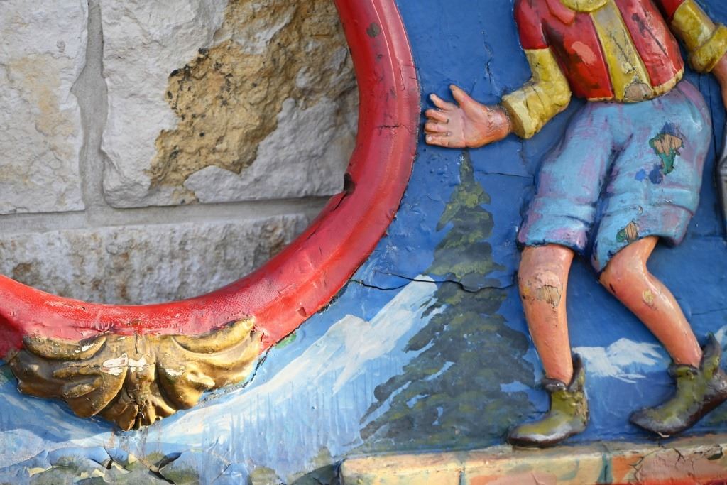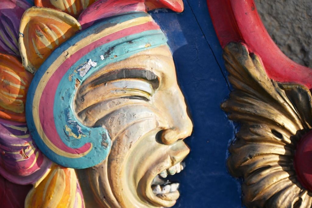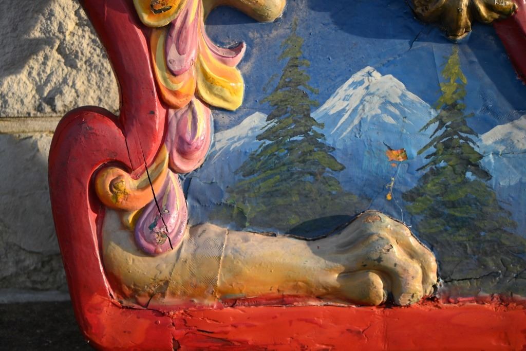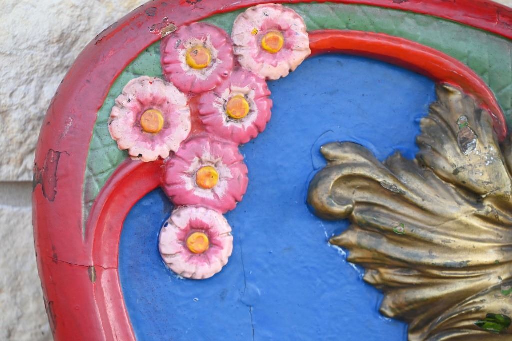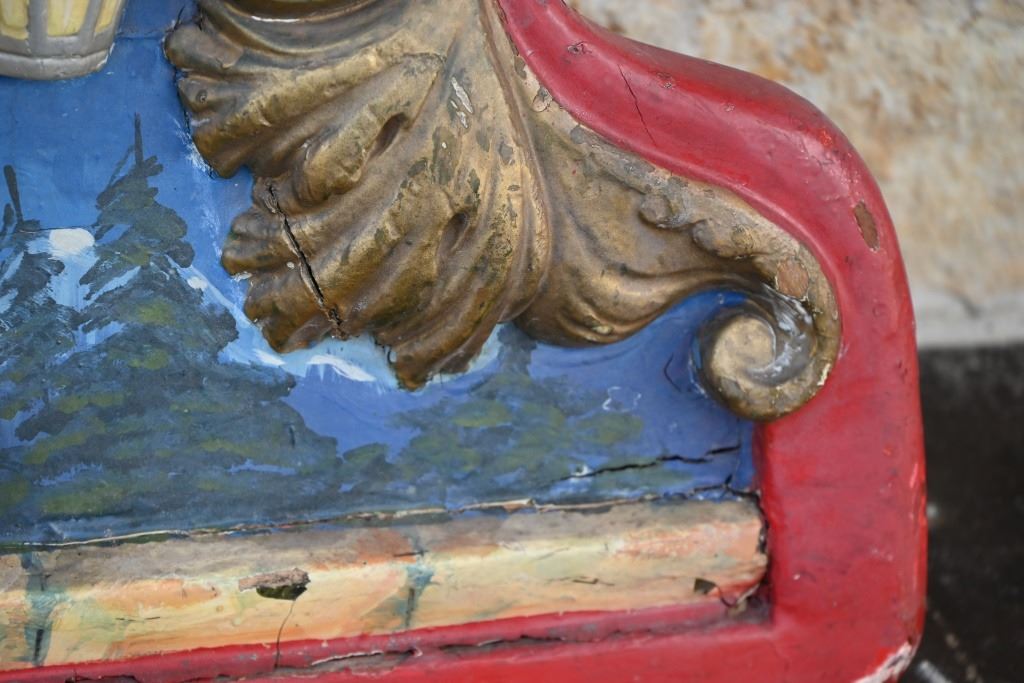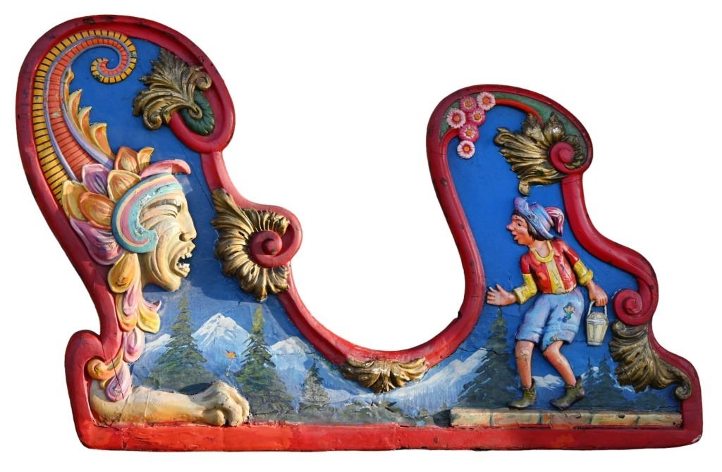 This is a side panel from bench on the Fort Worth Texas Zoo carousel. Hand carved, and hand-painted with gypsy motif. Measures 44" x 72"