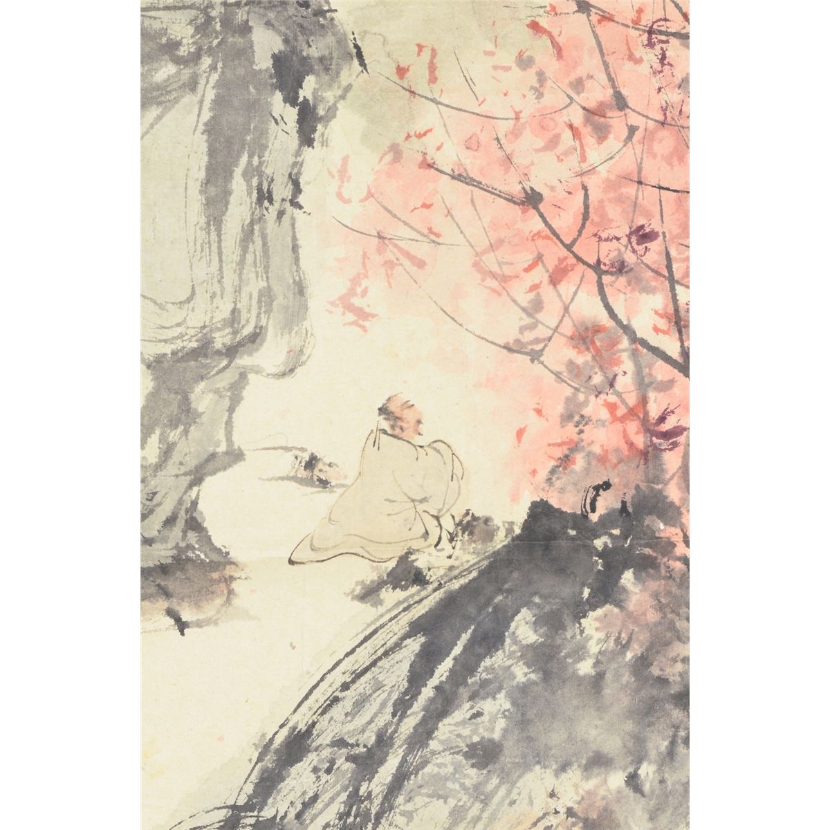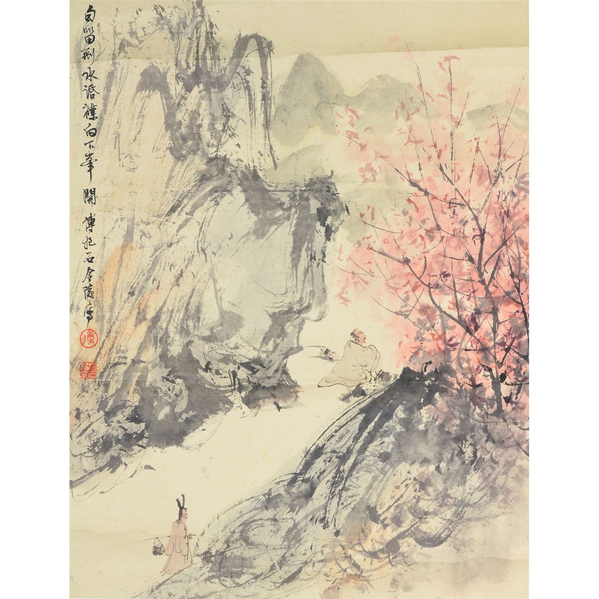 Fu Baoshi (1904-1965) Chinese watercolour painting; ink and colour on paper: 'Visiting a Friend'; signed and inscribed with seal of Fu Baoshi; 54 cm x 41 cm; painting is one of a series of four and featured on pp. 35 of Xiang Xu Art Publishing (2006); Provenance: A Private Canadian collection