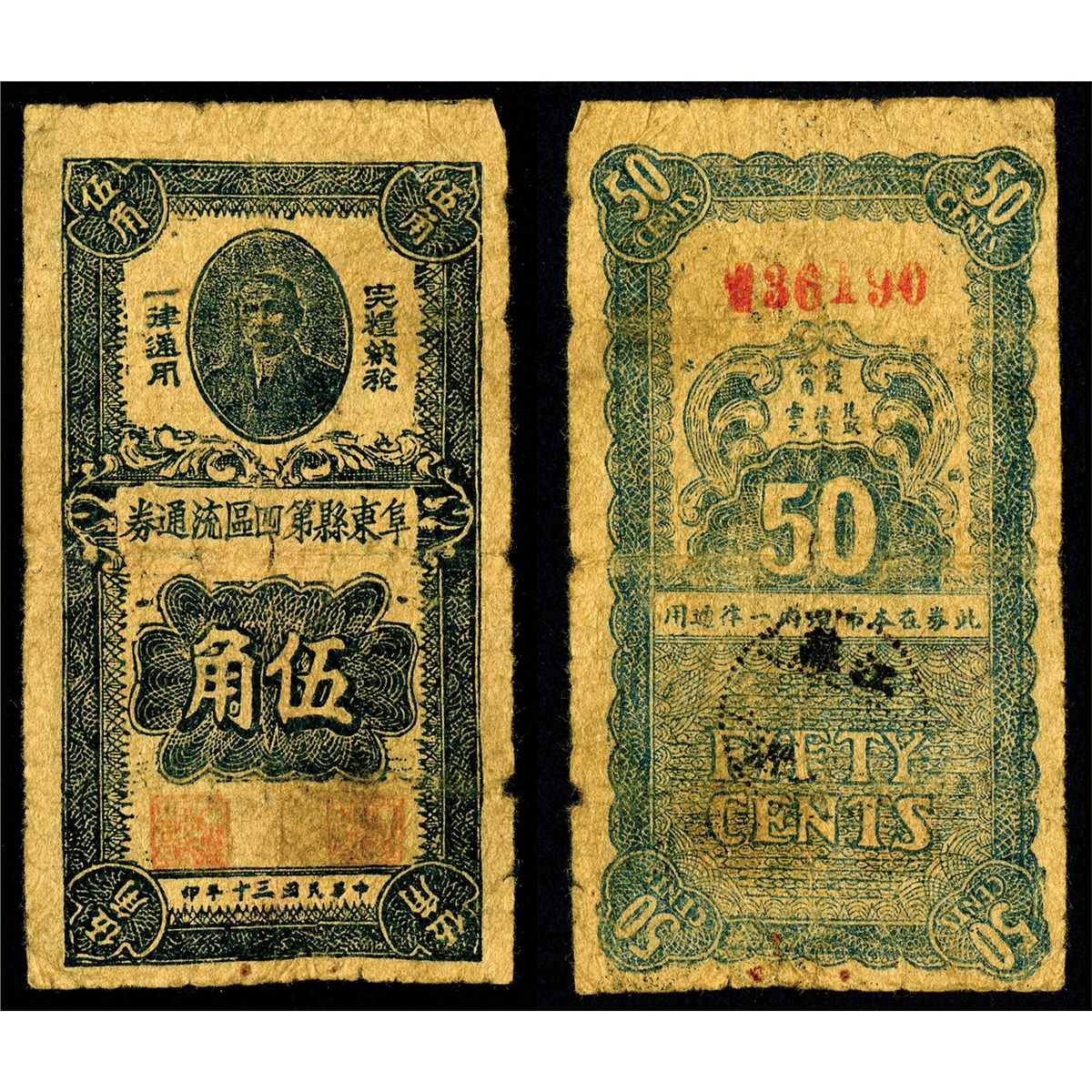 China, 50 cents, P-Unlisted, Blue-gray with SYS on face, back blue, VG, scarce and desirable note.