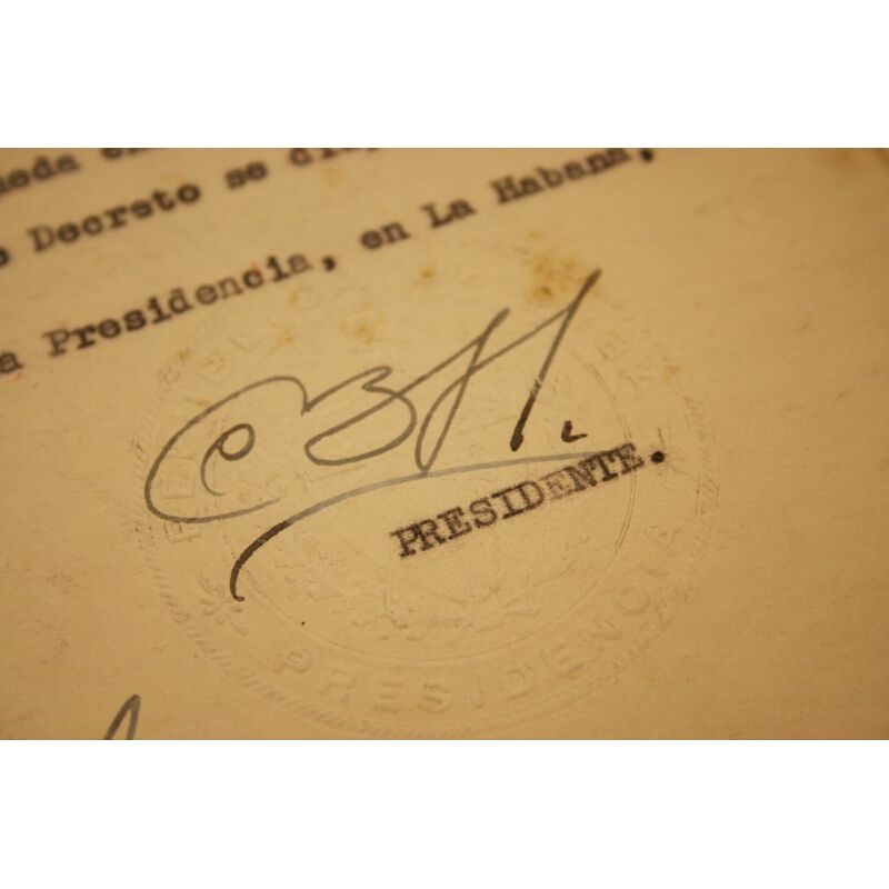 A 4 page document signed on the last page by the former President of Cuba, Fulgencio Batista.