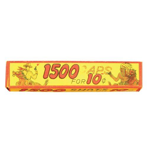 Full Box of Toy Cap Gun Caps 1500 for 10 cents. Some minor paper loss to three sides, one side perfect. 4 X 1 inches.