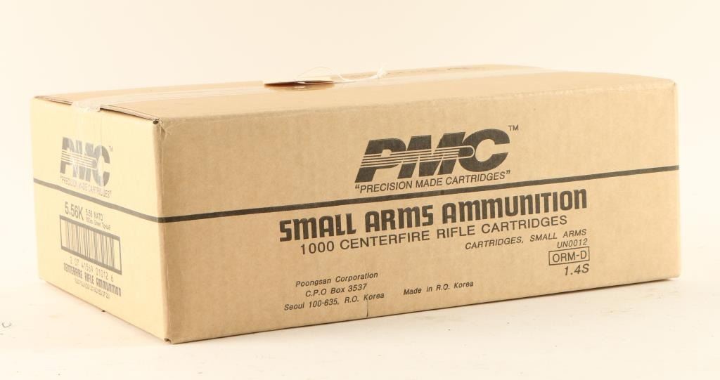 Includes 1000 rds of M855 Green Tip light armor piercing cartridges, new in box.