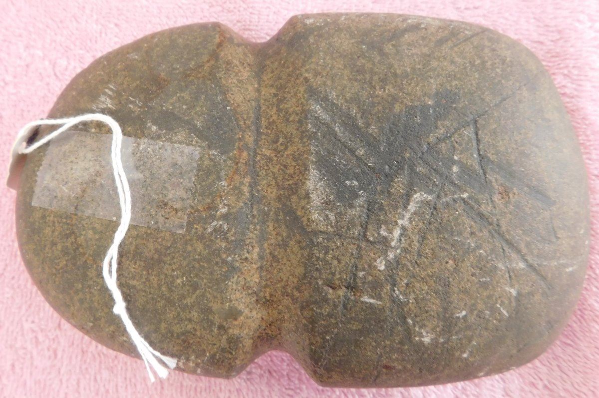 Full Groove Axe, pre-historic item. Made of basalt, the item measures 6" x 4" x 1.75". From Colorado, Pueblo area. Nice full groove axe. Condition: Good, see images. Shipping: $20.00 w/insurance and signature.