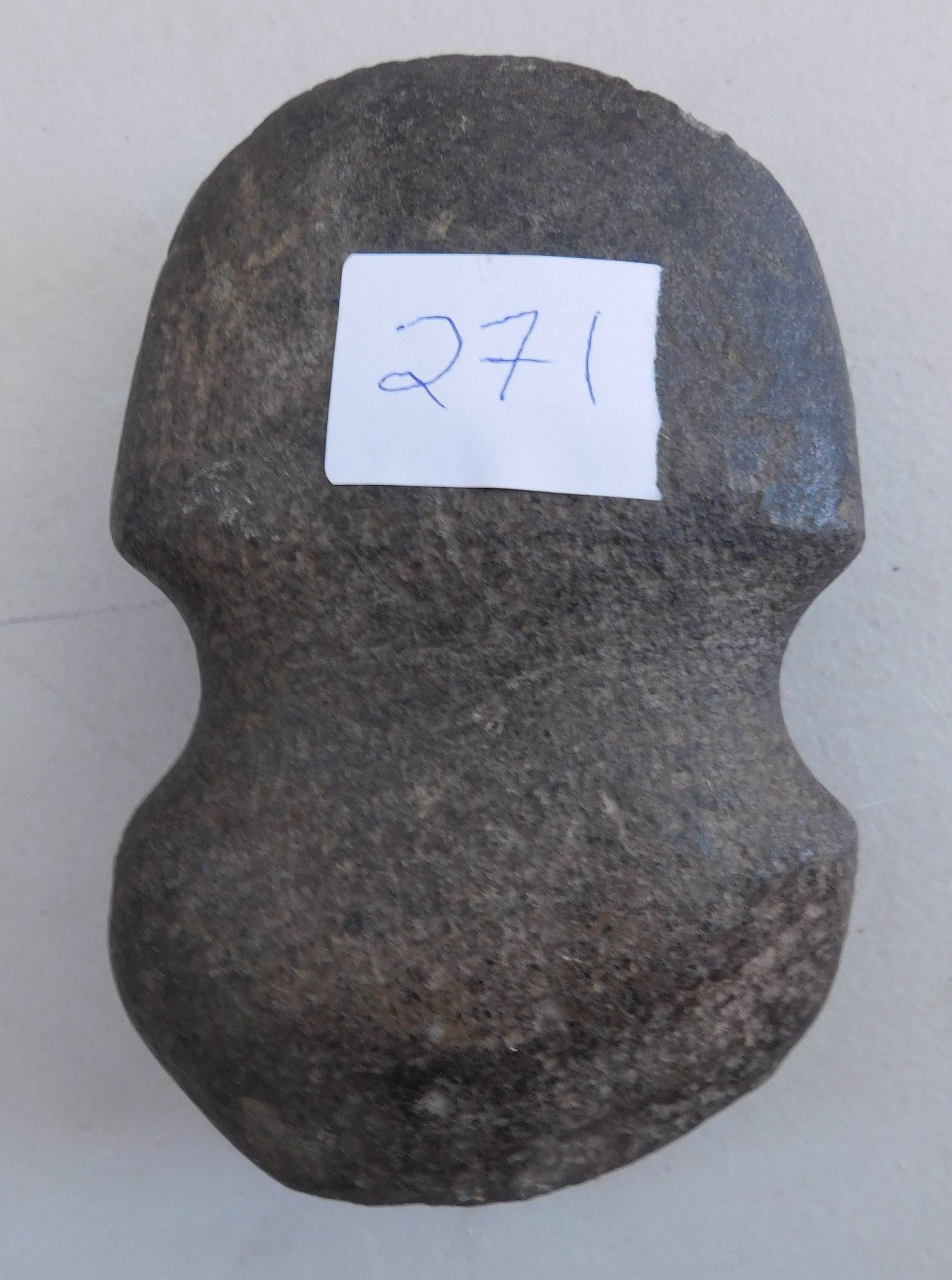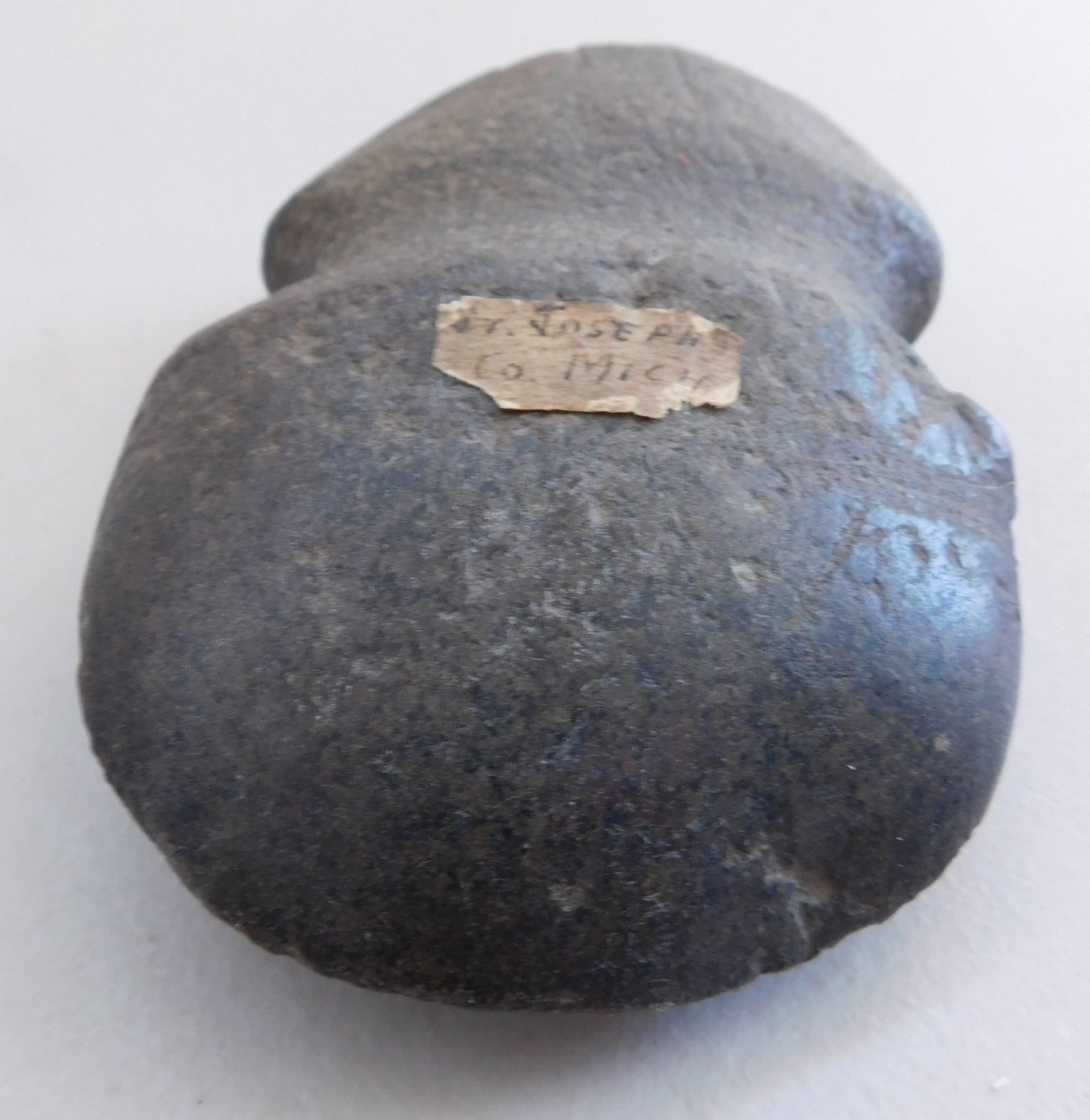 Full Groove Axe, archaic woodland era. Made of basalt, the item measures 5.25" x 3.5" x 2". Michigan, St. Joseph County. Nice tomahawk or axe head. Condition: Nice, see images. Shipping: $18.50 w/insurance and signature.