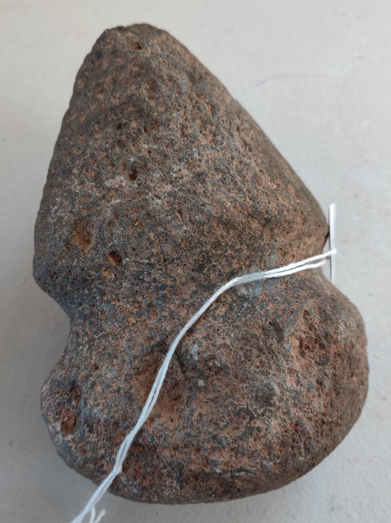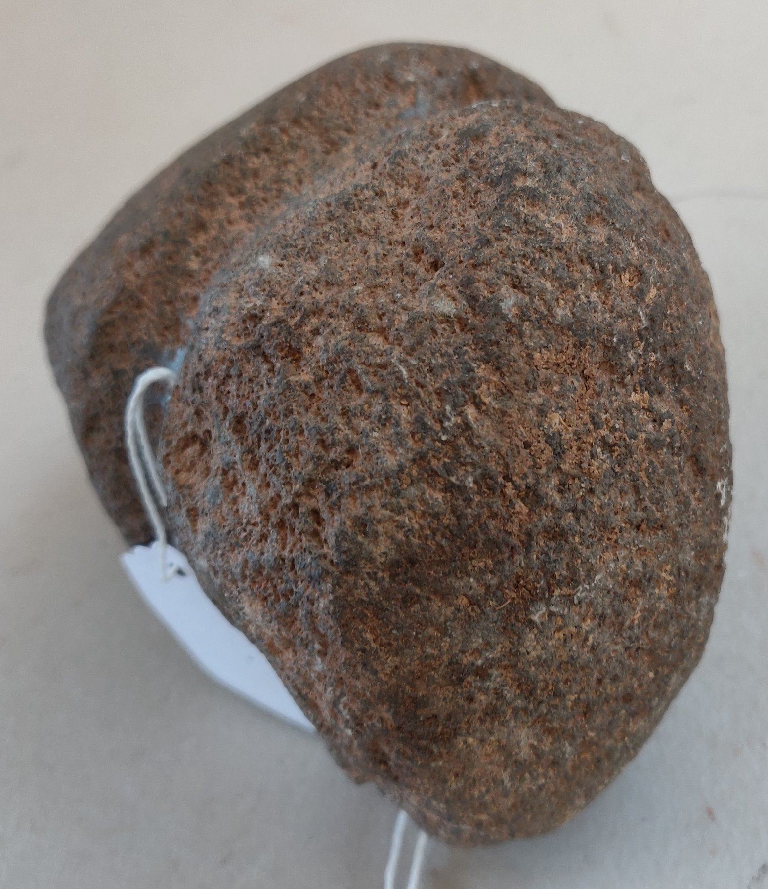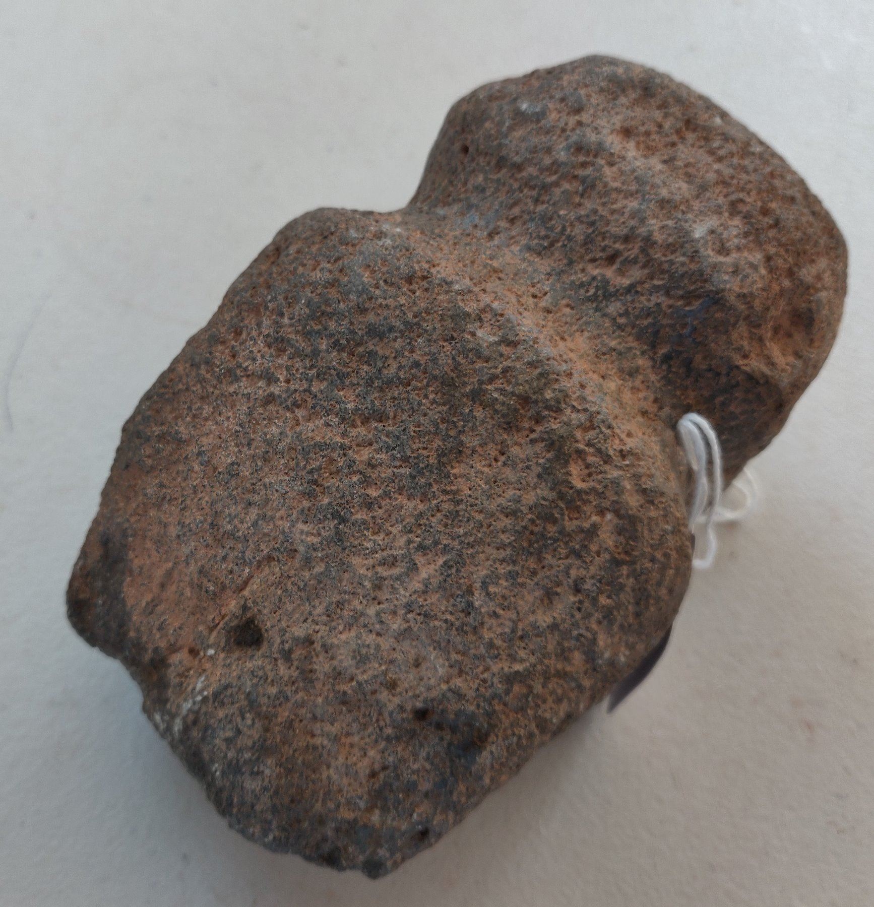 Full Groove Axe, pre-historic item. Made of granite and basalt, the item measures 5 1/2" x 3" x 3". Ajo, Pima County, Arizona. Nice polish in groove of this stone artifact. Condition: Chips on bit, see images. Shipping: $24.50 w/insurance and signature, due to value.