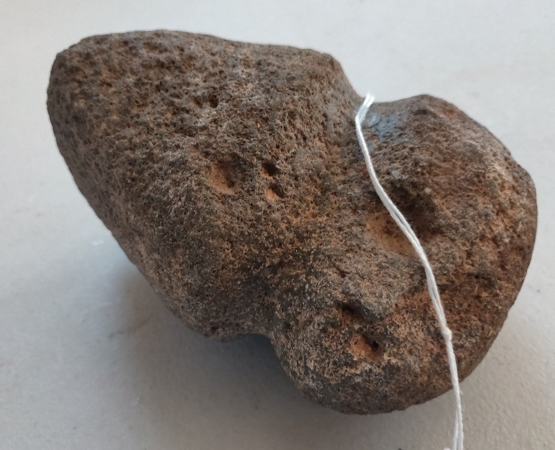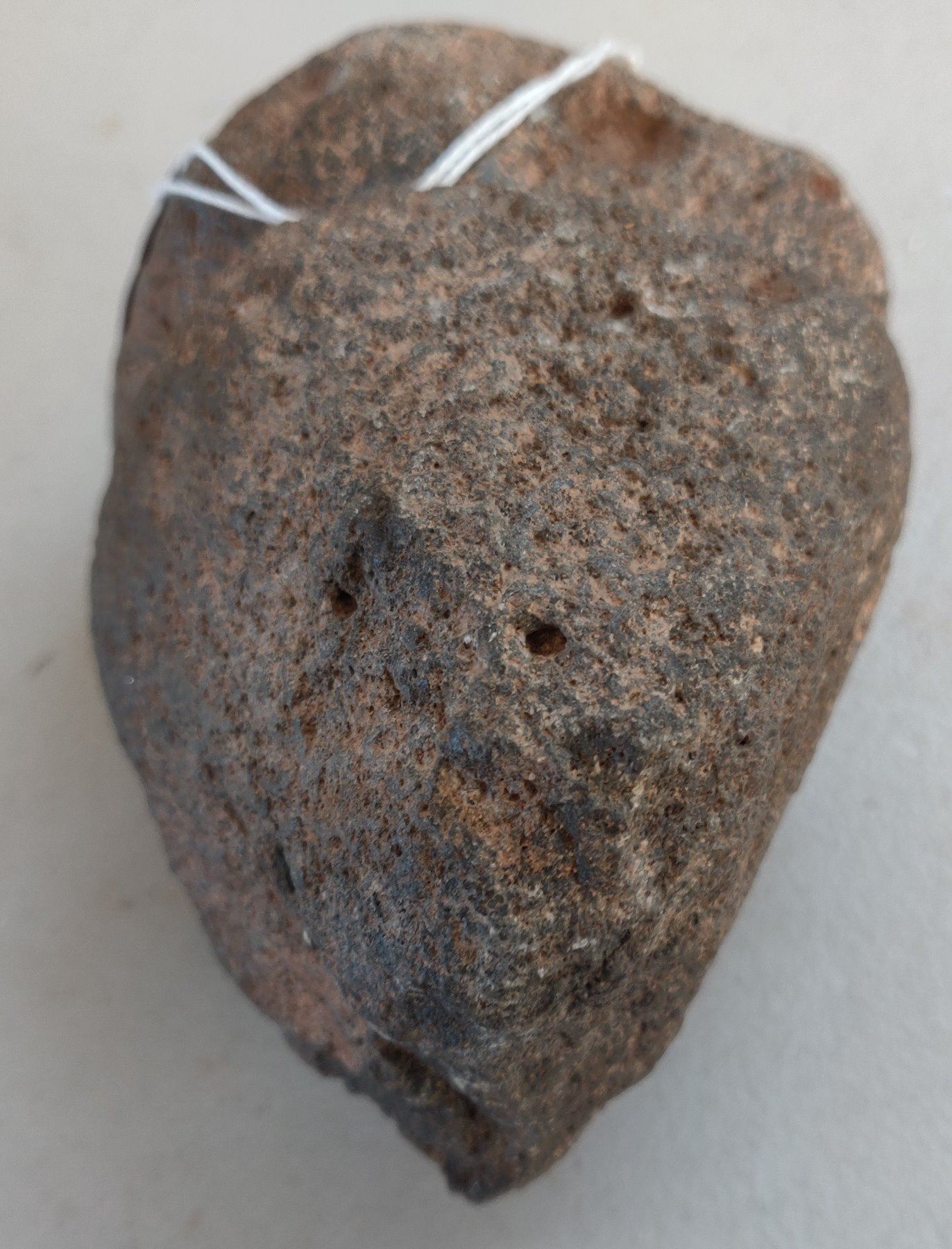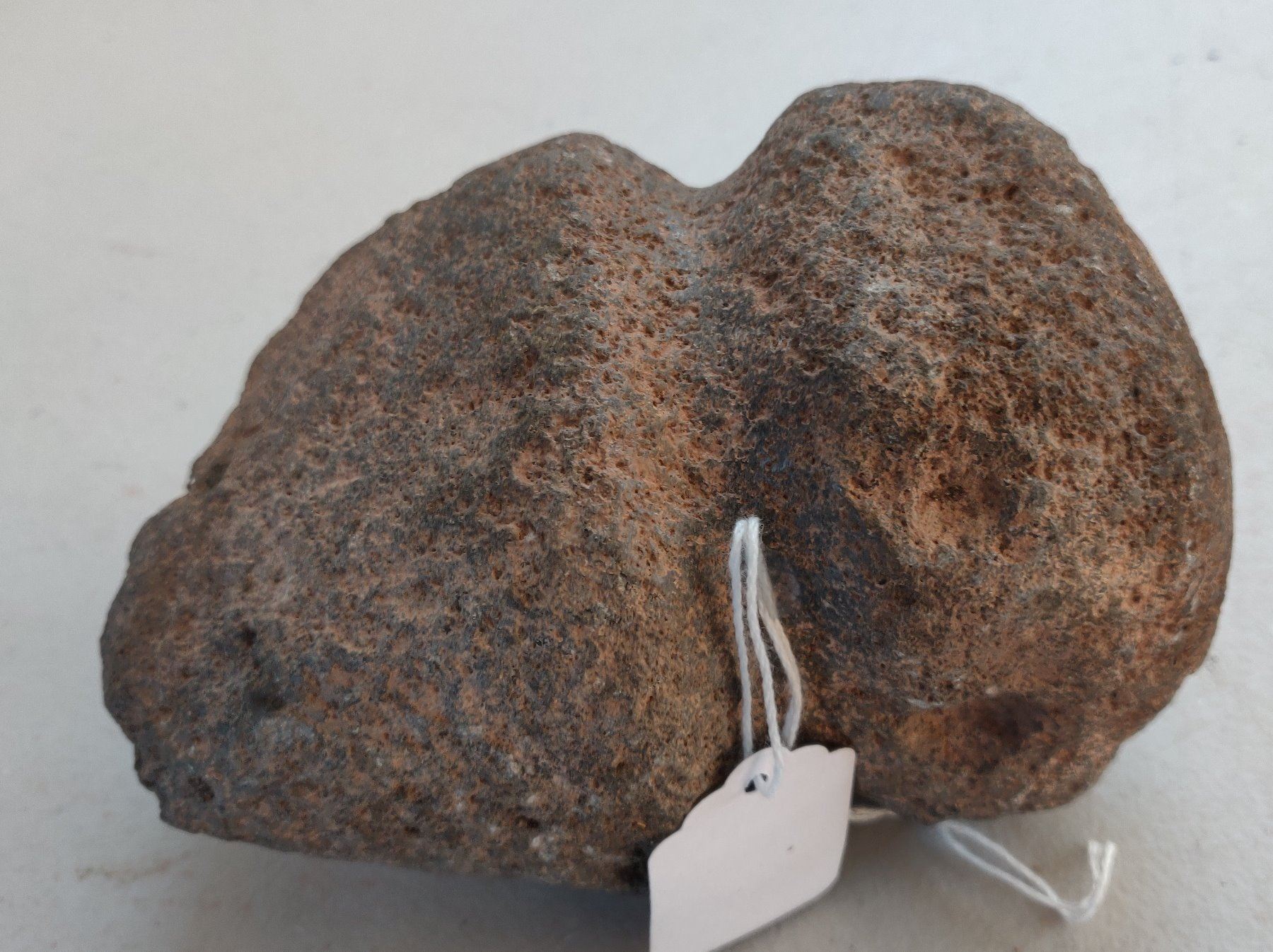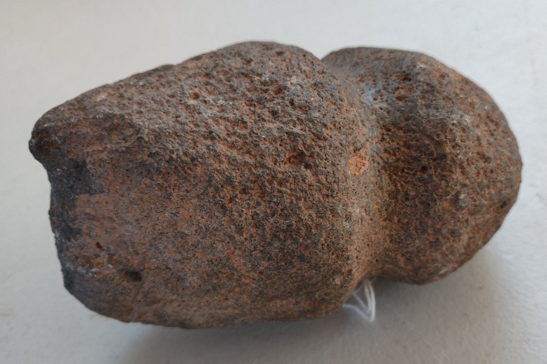 Full Groove Axe, pre-historic item. Made of granite and basalt, the item measures 5 1/2" x 3" x 3". Ajo, Pima County, Arizona. Nice polish in groove of this stone artifact. Condition: Chips on bit, see images. Shipping: $24.50 w/insurance and signature, due to value.