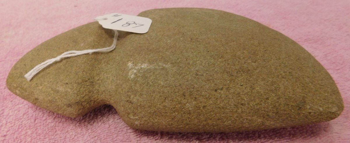 Full Groove Stone Axe, historic period Made of sandstone and measuring 6.5" x 4.5" x 2". From Colorado. Probably used as a dance axe. Condition: Good, see images. Shipping: $20.00 w/insurance and signature.