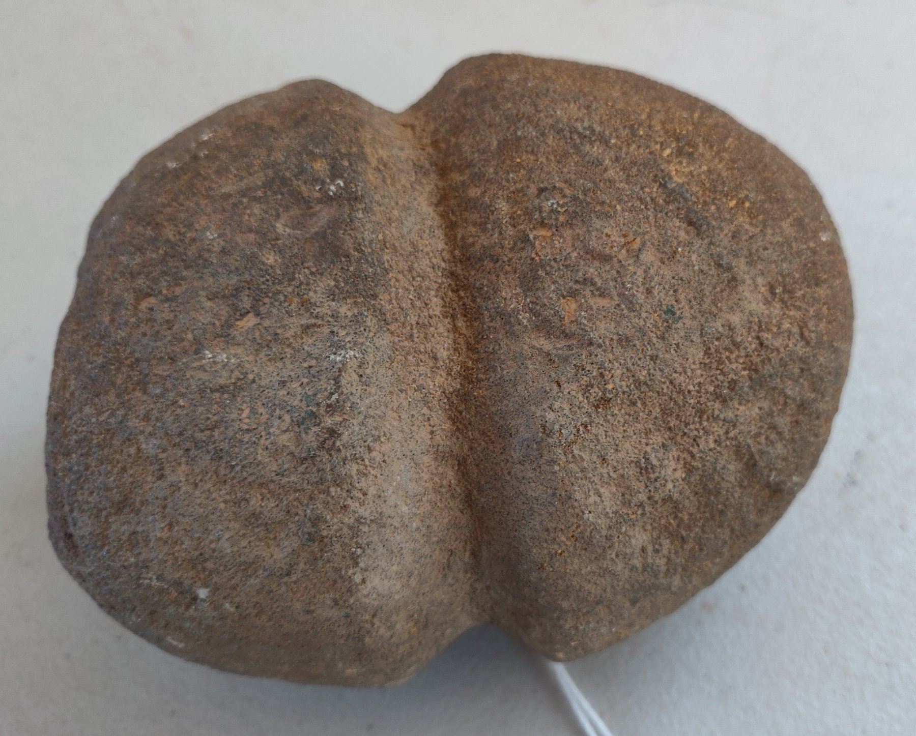 Full Groove Stone Maul, pre-historic item. Made of granite stone, the item measures 5" x 3" x 3". Hohokam, Ajo, Pima County, Arizona. Condition: Old chips, see images. Shipping: $22.50 w/insurance and signature, due to value.