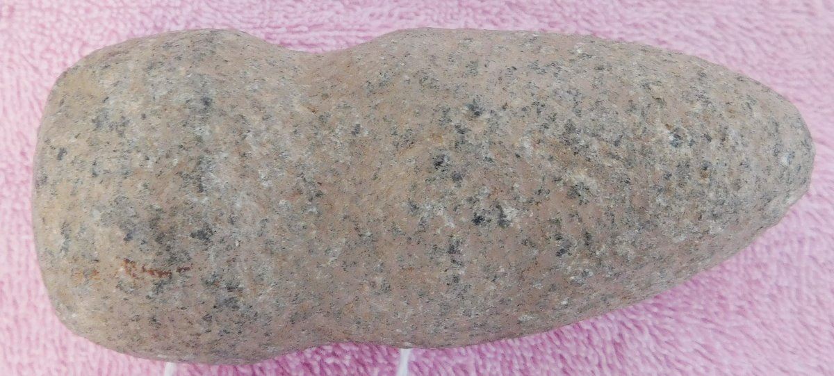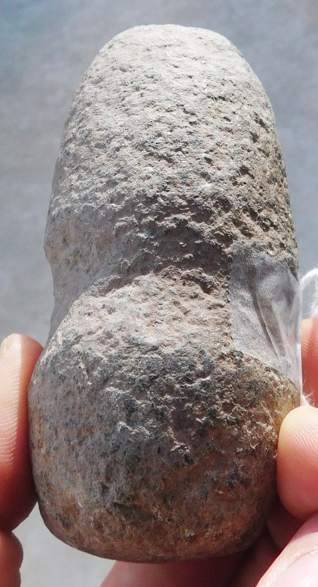 Full Groove War Club Head, circa 2000 years old. Made of basalt and measuring 4.5" x 2 x 2.25". From Colorado, Pueblo. Full groove, small item, probably had a long handle. Condition: Good, see images. Shipping: $18.50 w/insurance and signature.