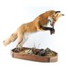 On his back legs, leaping. Good condition. 25x22 on wood base