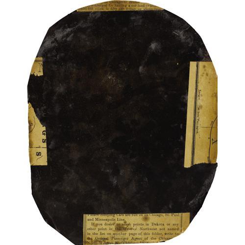 <B>Full Plate Hand-tinted Tintype of Civil War Soldier,</B></I> 6.25" x 8.25" oval image, framed. This is a very interesting image. The soldier is wearing a jacket and vest. He is also wearing a western-style hat. His jacket has three-stripe sergeant's chevrons and two stripes on the standing collar. The stripes are all tinted red, possibly artillery. On his breast he is wearing a metal star, that could be the badge of the Union XX Corps or a Confederate unit's specialized insignia. The image has a mat with "Churchill, 12 Wall St. Kingston" printed at the bottom. An extremely nice image in very fine condition.<BR><BR><b>Shipping:</b> Framed - without Glass, Small (<a target="_blank" href="http://www.heritageauctions.com/common/shipping.php">view shipping information</a>)