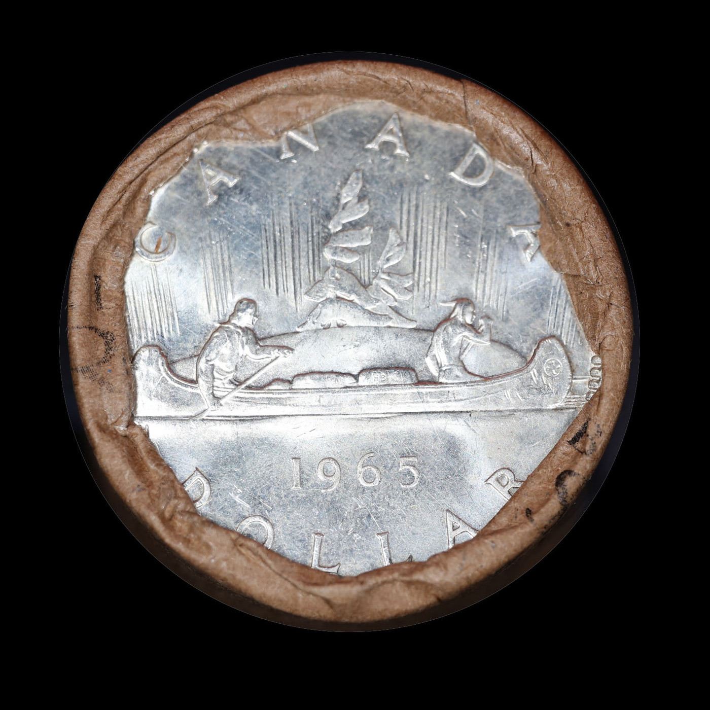Full Roll of Silver 1965 Canadian Dollar with Queen Elizabeth II, 20 Coins in total.