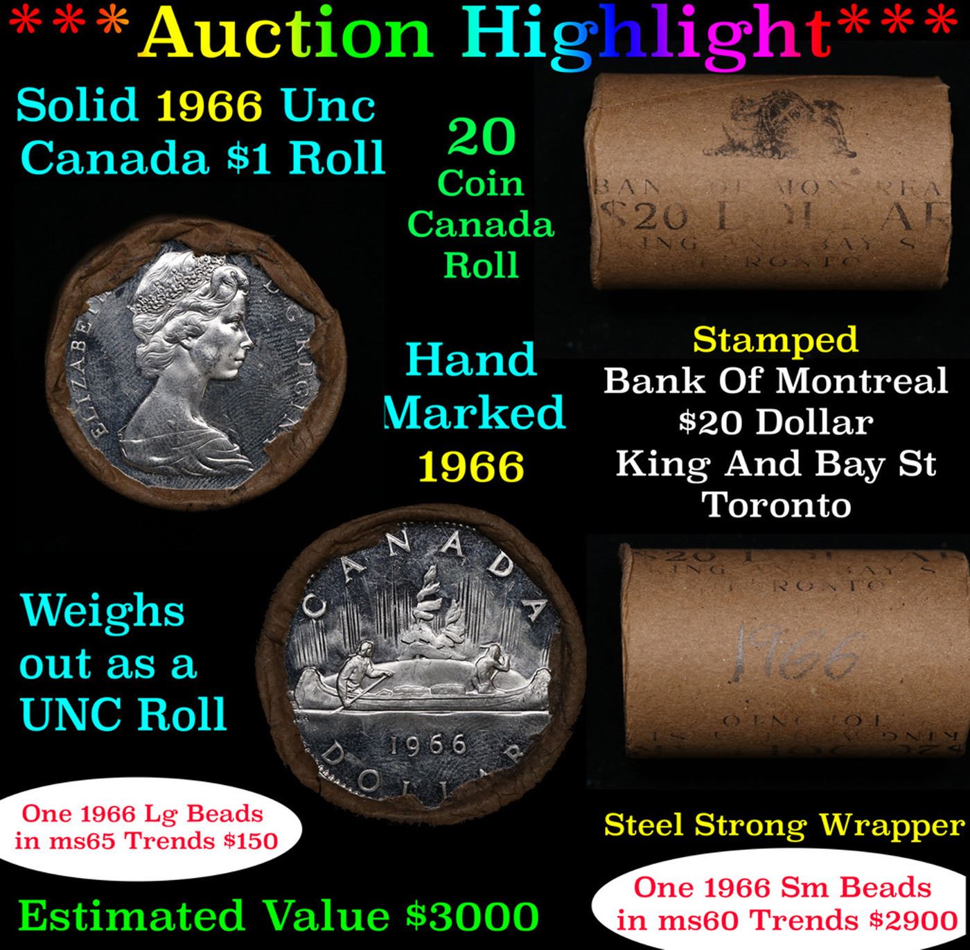 Full Roll of Silver 1966 Canadian Dollars with Queen Elizabeth the II, 20 coins in total KM# 64.1