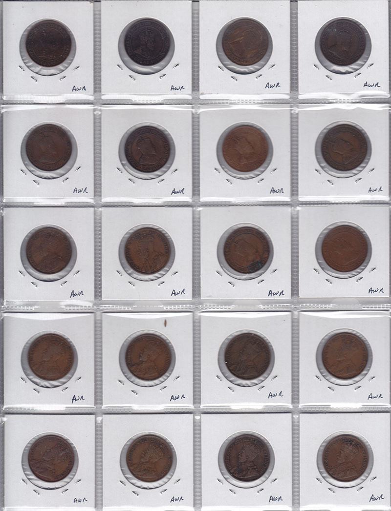 Full Run Of Canadian Large 1-Cent Coins, In 2x2's - Including Both 1907 & 1907-H -- 24 Coins