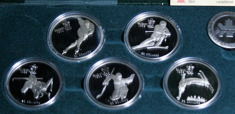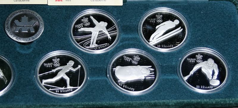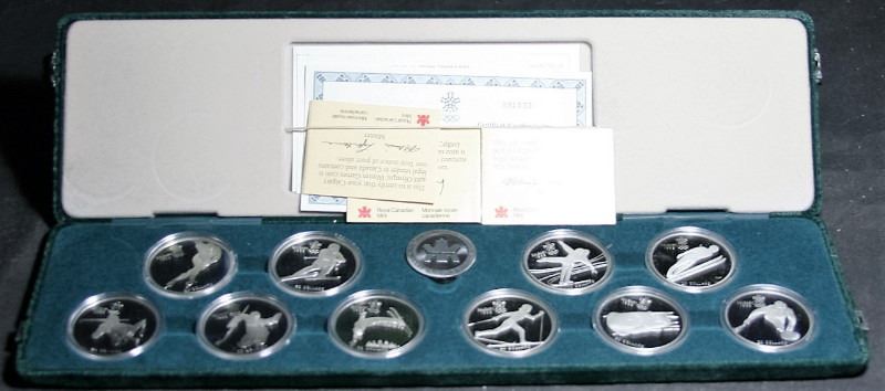 Full Set - 10 Calgary 1988 Olympic Sterling Silver 1 Oz. $20 Rounds In Original Box - 1 Oz. Each (10 Oz. In set) - With COAs