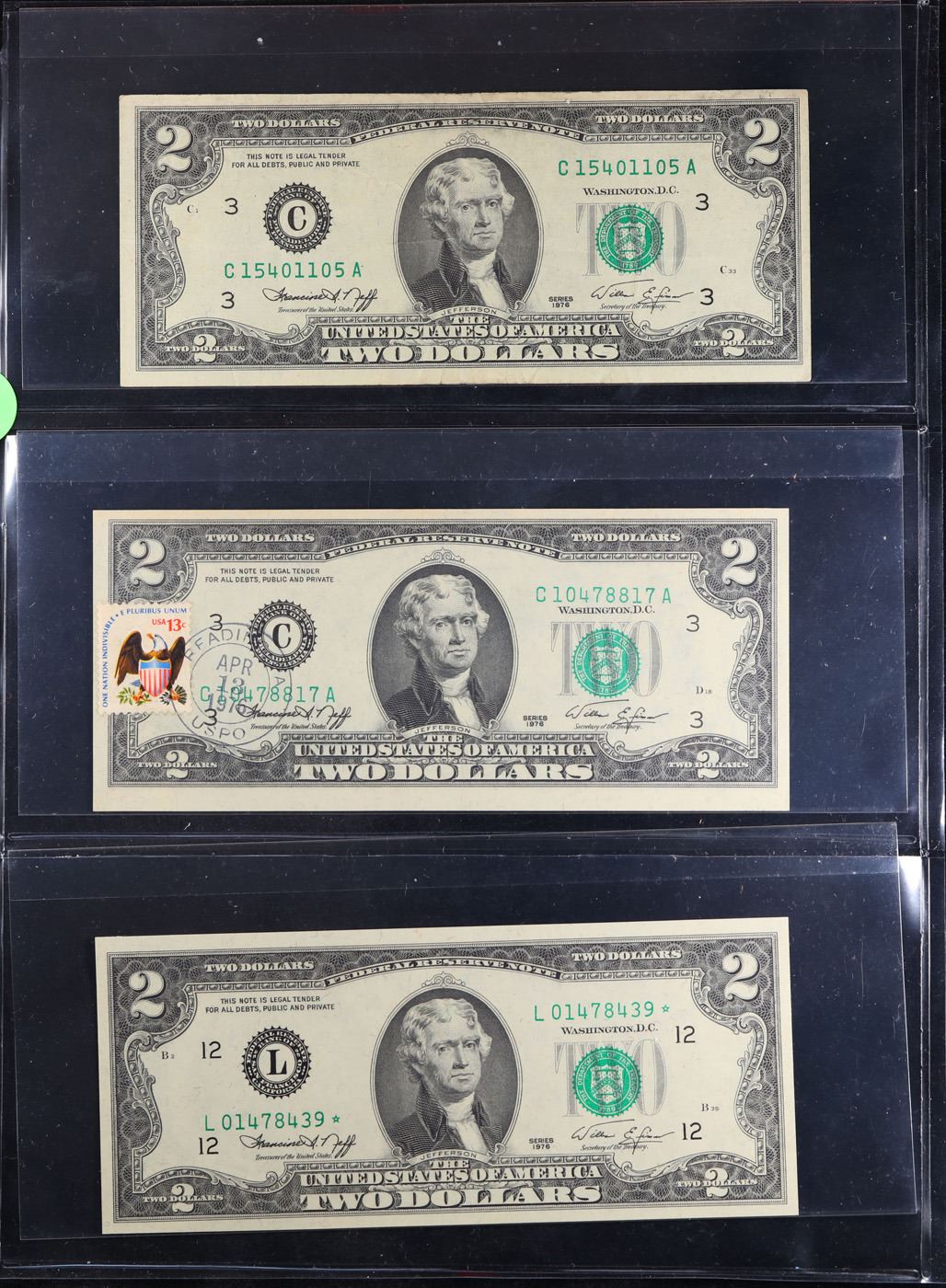 Full Set of 3 1976 $2 Federal Reserve Notes All CU *Star Note* 1976 $2, 1976 $2 1st Day of Issue, with Stamp, 1976 $2.