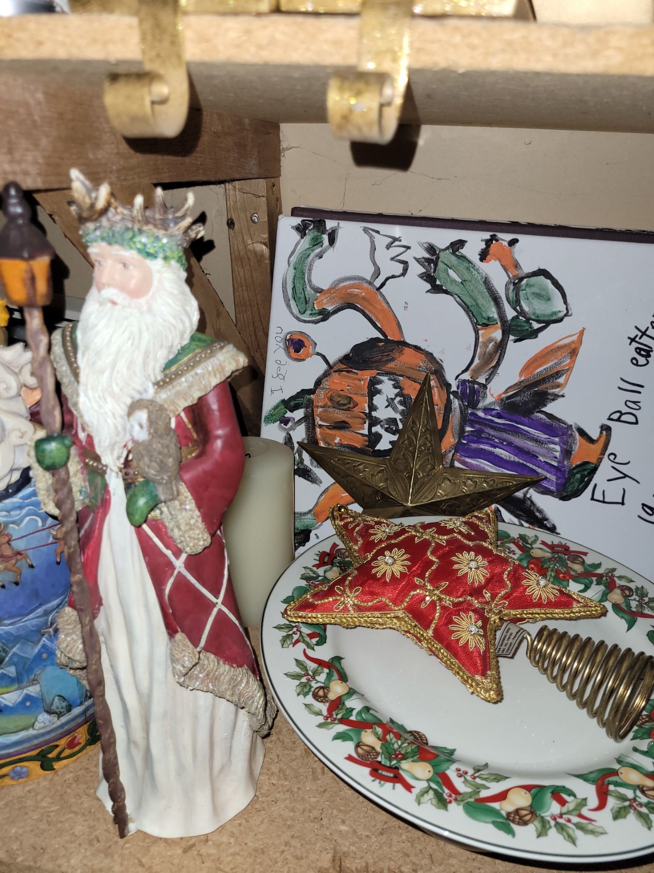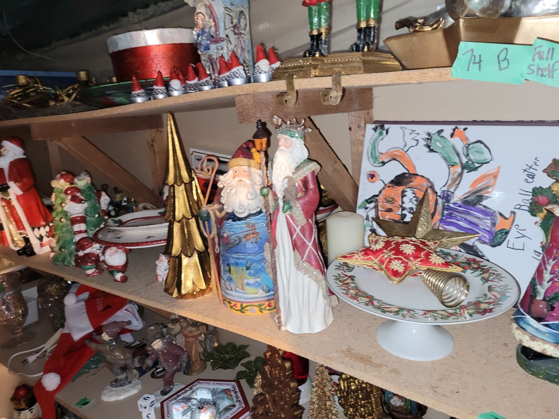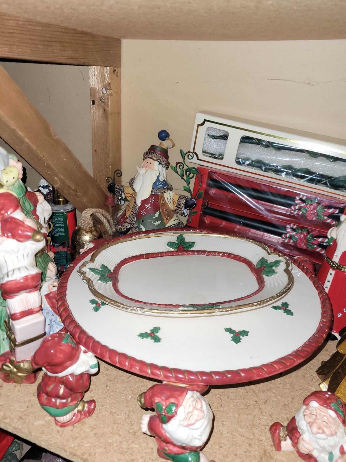 Full Shelf of Quality Holiday Decor, Few Fitz & Floyd Vintage Pieces - Definitely Not Your Walmart Holiday Decor!