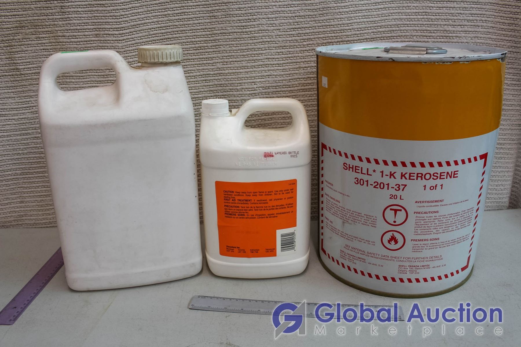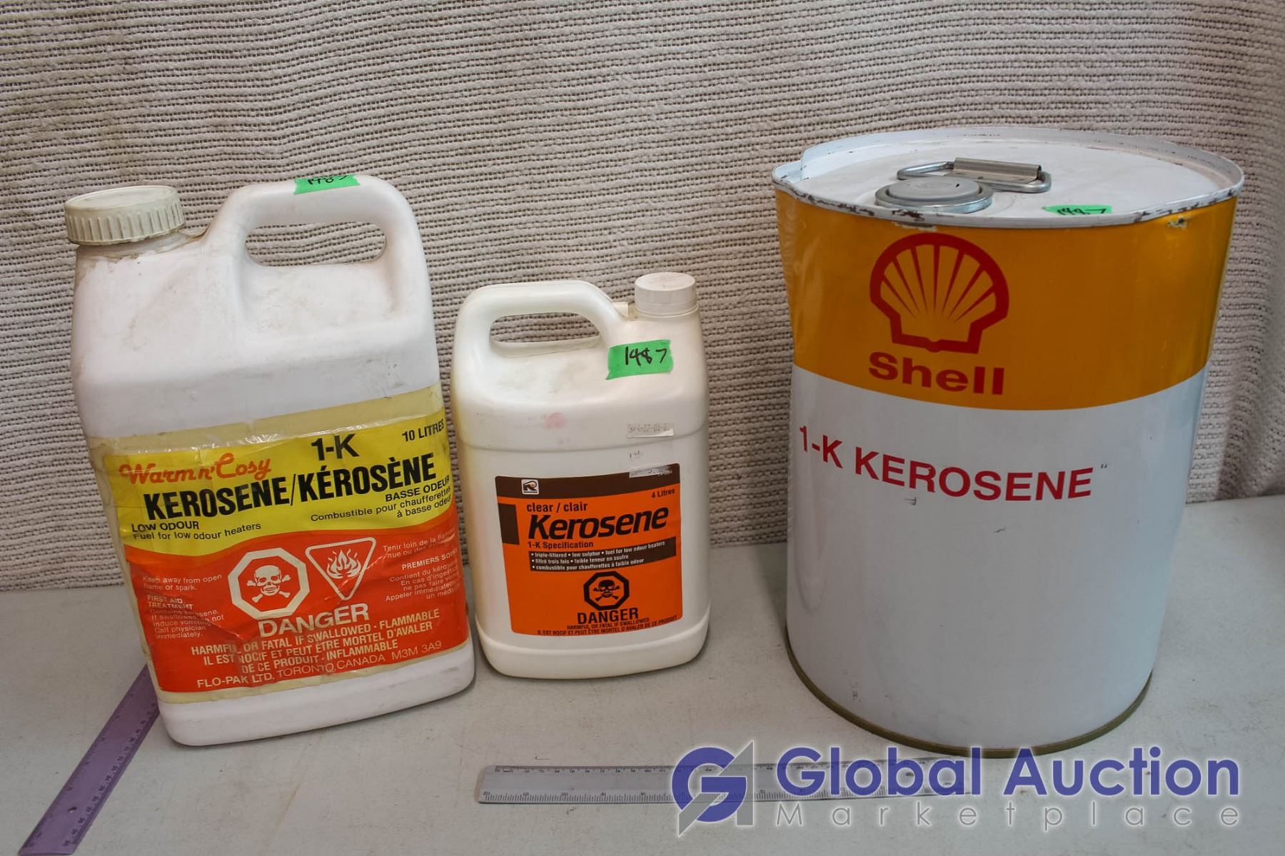 Full Shell Container Of Kerosene With 2 Plastic Container, 1 Empty