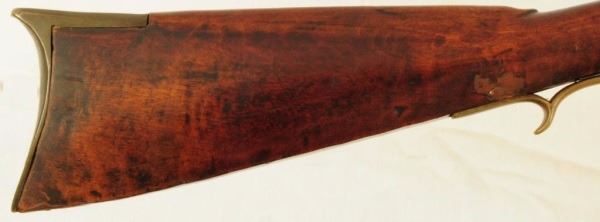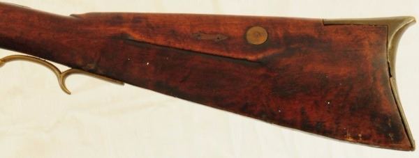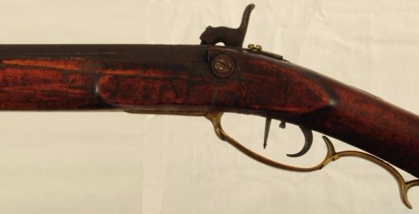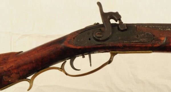 With double set trigger, converted from flint lock. Mfg in early 1800s. Antique.